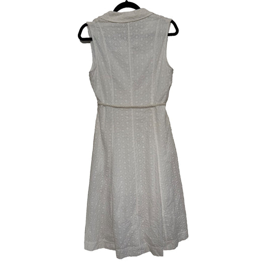 Anne Klein Womens 8 White Eyelet Midi Dress Belted Sleeveless Cottagecore