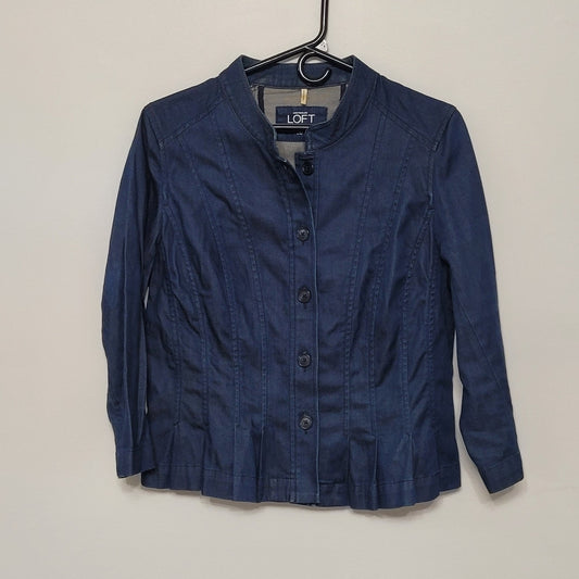 Ann Taylor Loft Women’s 8 (S-M) Denim Fitted Button Up Peplum Hem Blazer