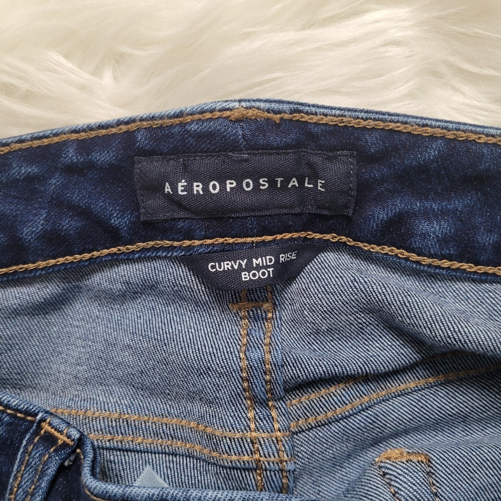 Aeropostale women’s jeans, size 10 Short, mid-rise curvy fit in dark wash bootcut style.