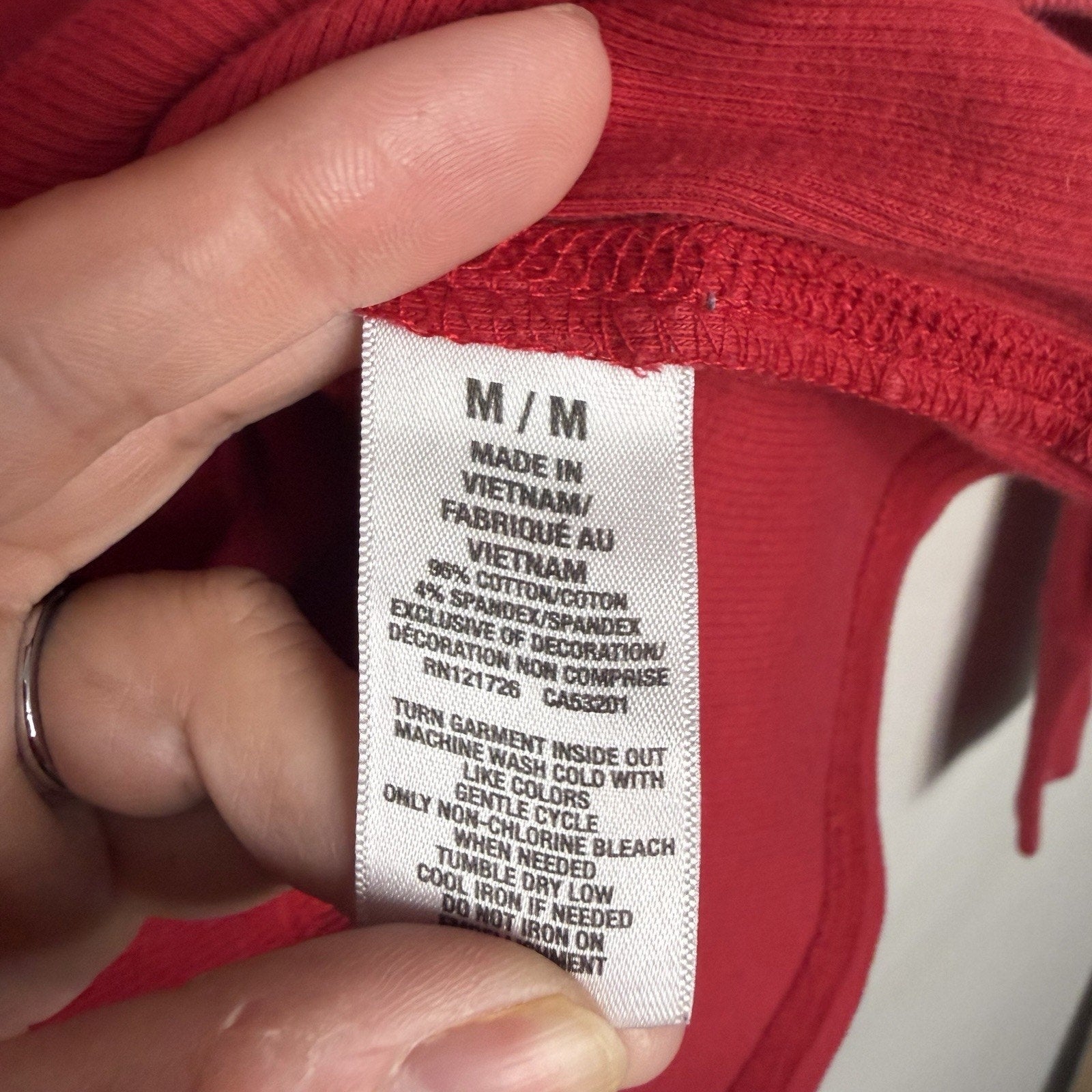 Aeropostale Y2K Retro Womens M Red Ribbed Long Sleeve V-Neck Logo Henley Top