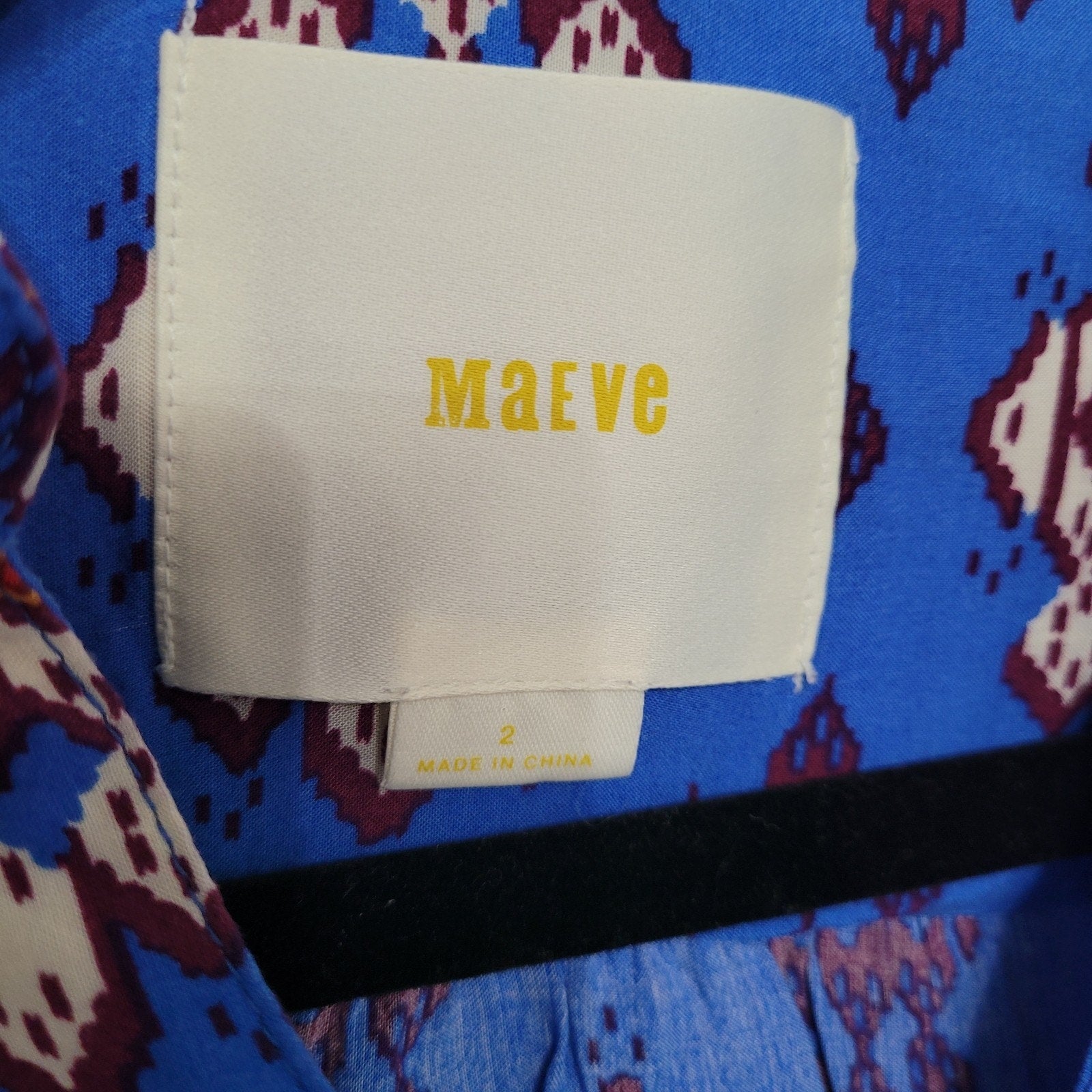 Anthropologie Maeve “Woodland Walk” blouse, size 2, in blue with boho-inspired print.