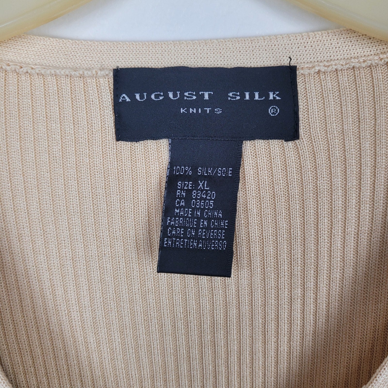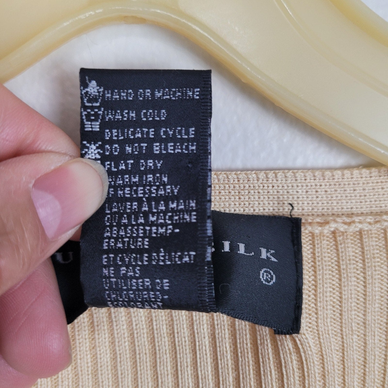 August Silk Womens XL 100% Silk Cardigan Tank Set Soft Yellow Ribbed Grandmacore