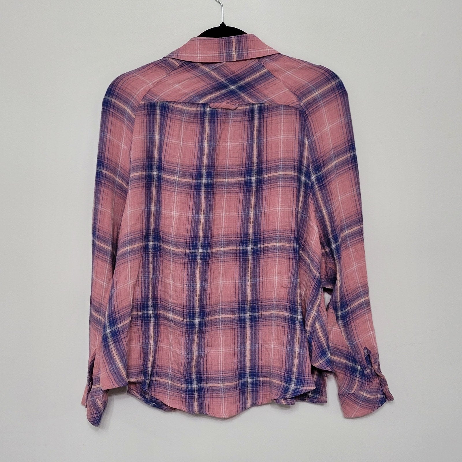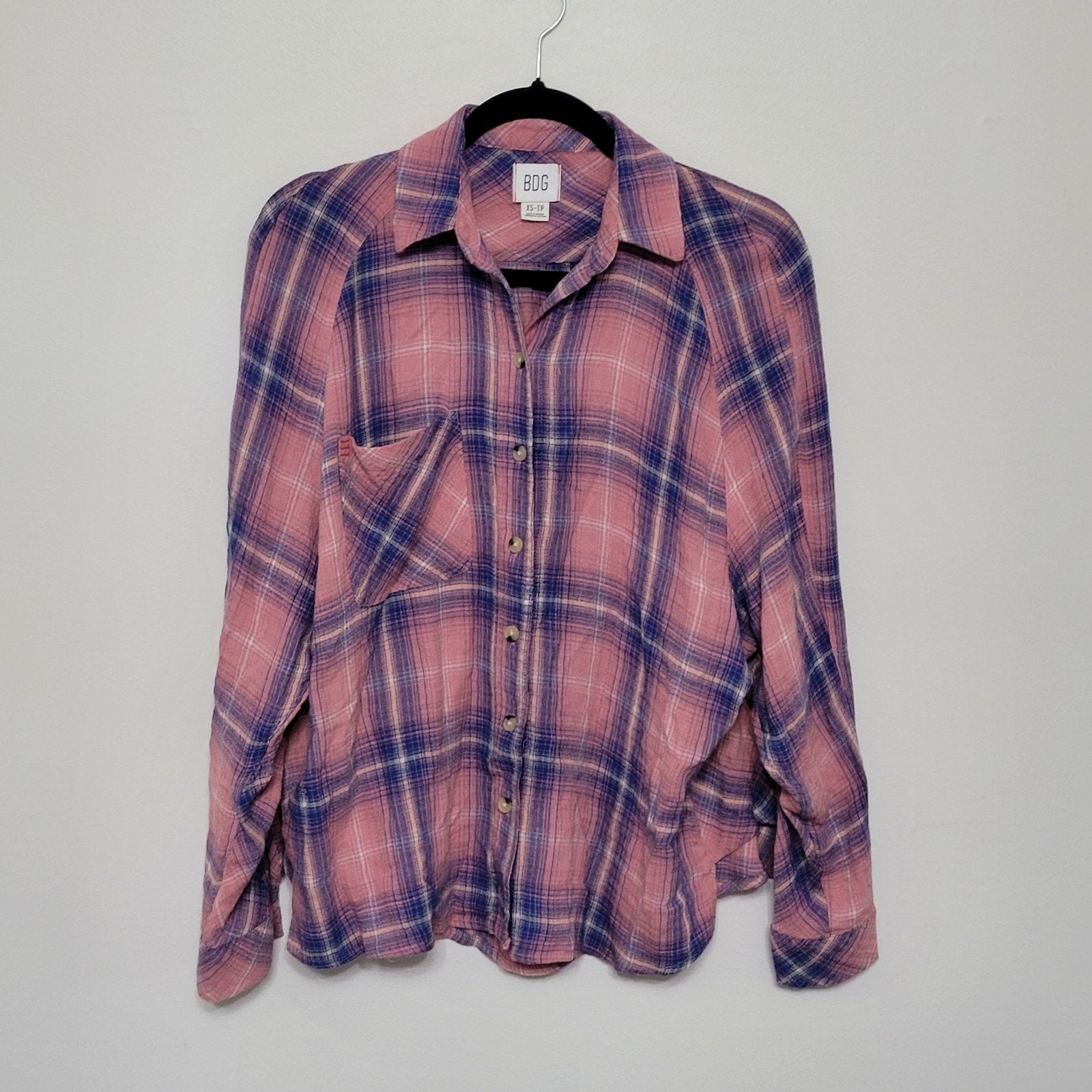 BDG Urban Outfitters Keanu flannel shirt, women’s size XS, in pink and blue plaid.