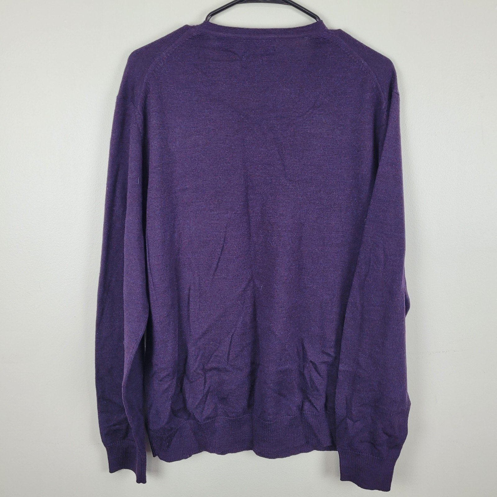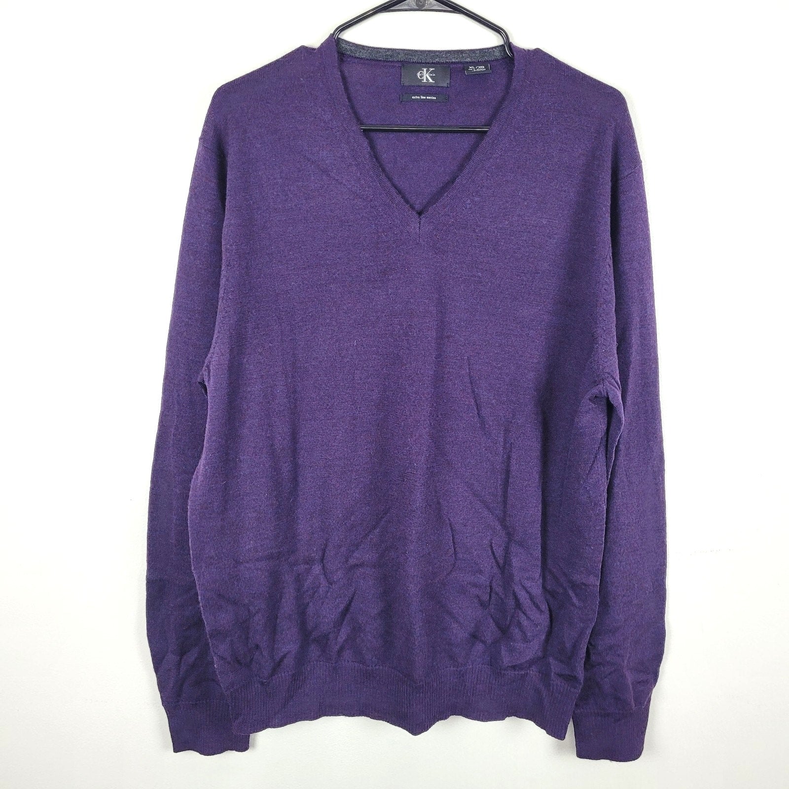 Calvin Klein Extra Fine Merino Wool V-Neck Sweater Men's XL Purple