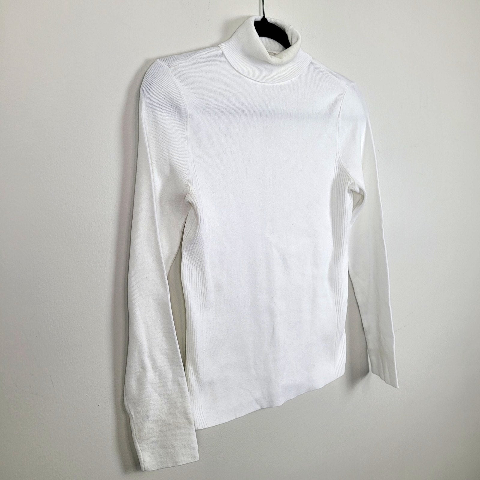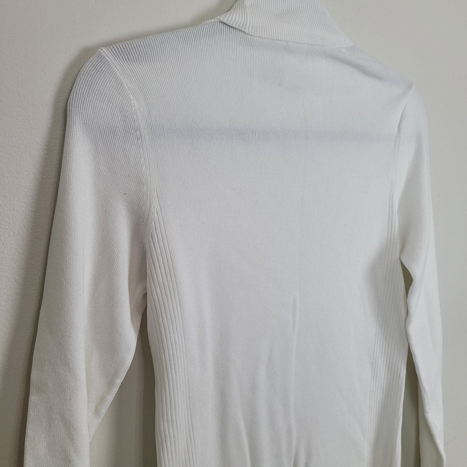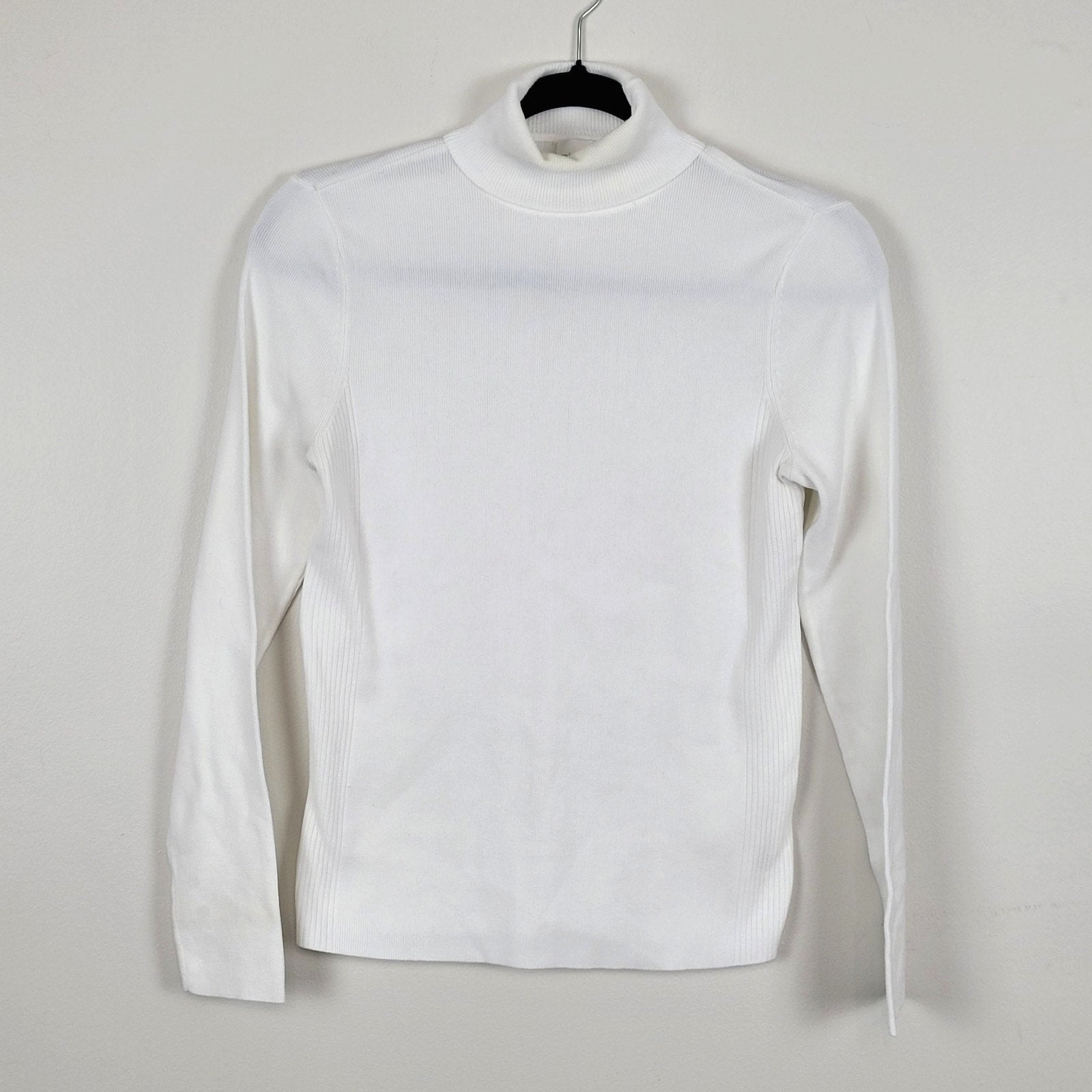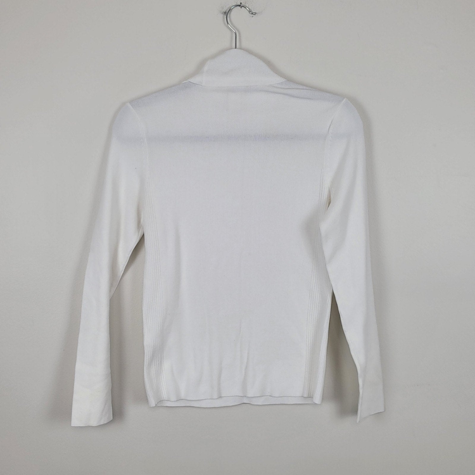 Chico’s 0 Women’s Small (4) Cream Turtleneck Sweater Ribbed Side Panel