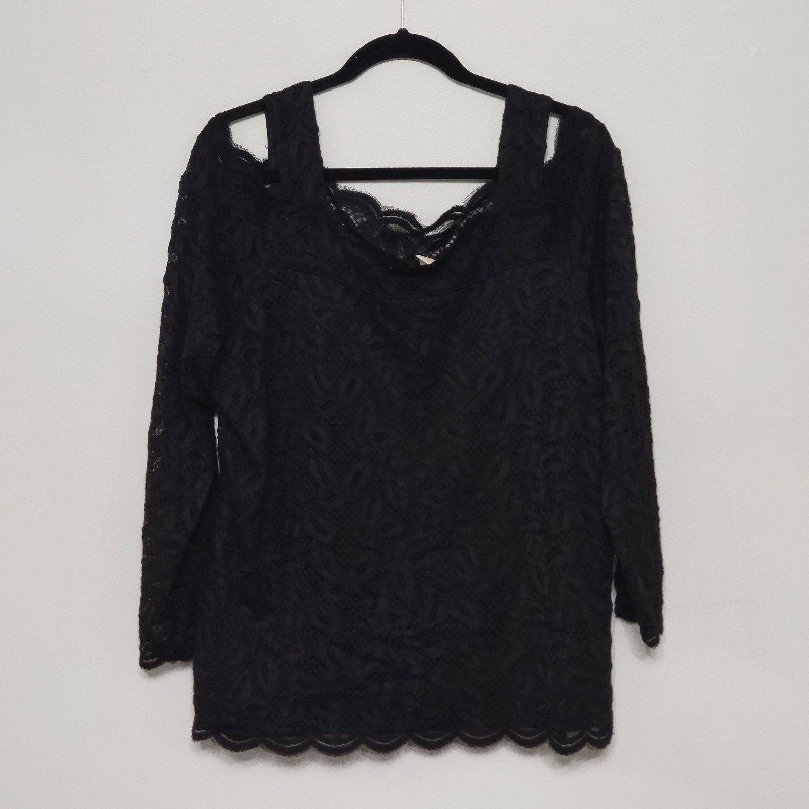 Chico's Black Cold Shoulder Poplin Sleeve Knit Top Size 3 XL/16-18