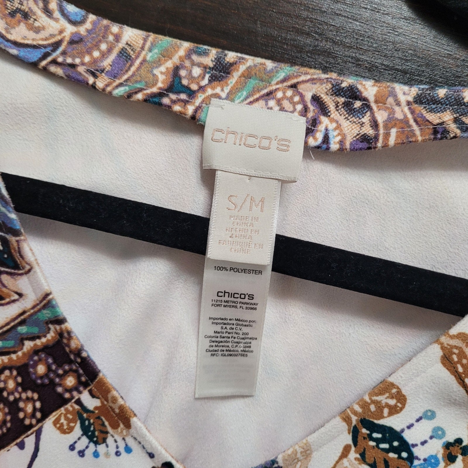 Chico’s super soft faux suede poncho top in paisley print, women’s size S/M. A lightweight layering piece with a relaxed, flowy fit and soft-touch fabric.