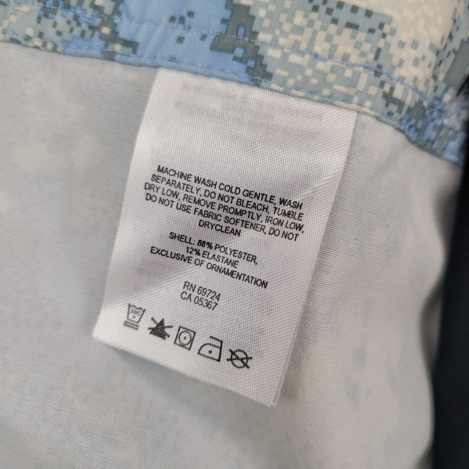 Blue camo pattern with logo patch detail