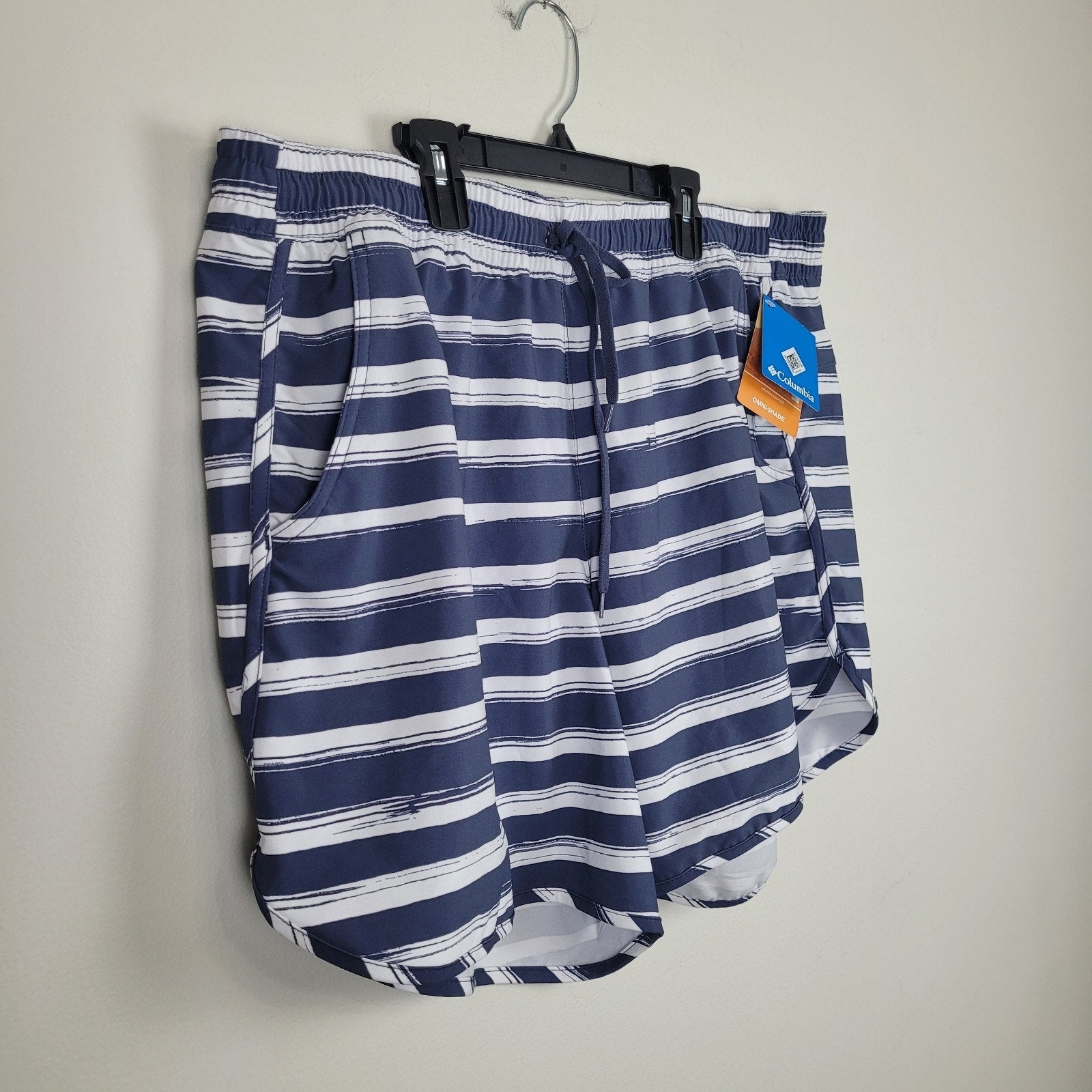 Columbia Women’s 1X Water Shorts 6” Omni-Shade Striped Blue Drawstring NWT Unlined