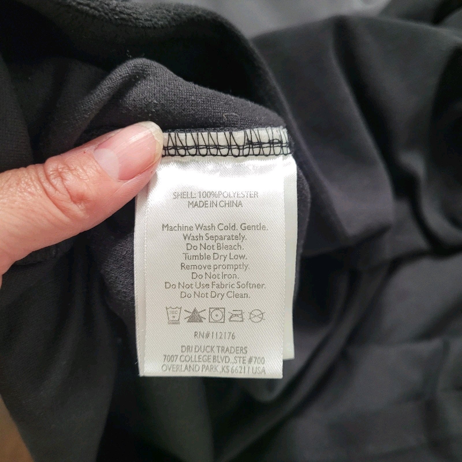 Dri Duck 1/4 zip men’s pullover, size Large, black with gray panel detail.