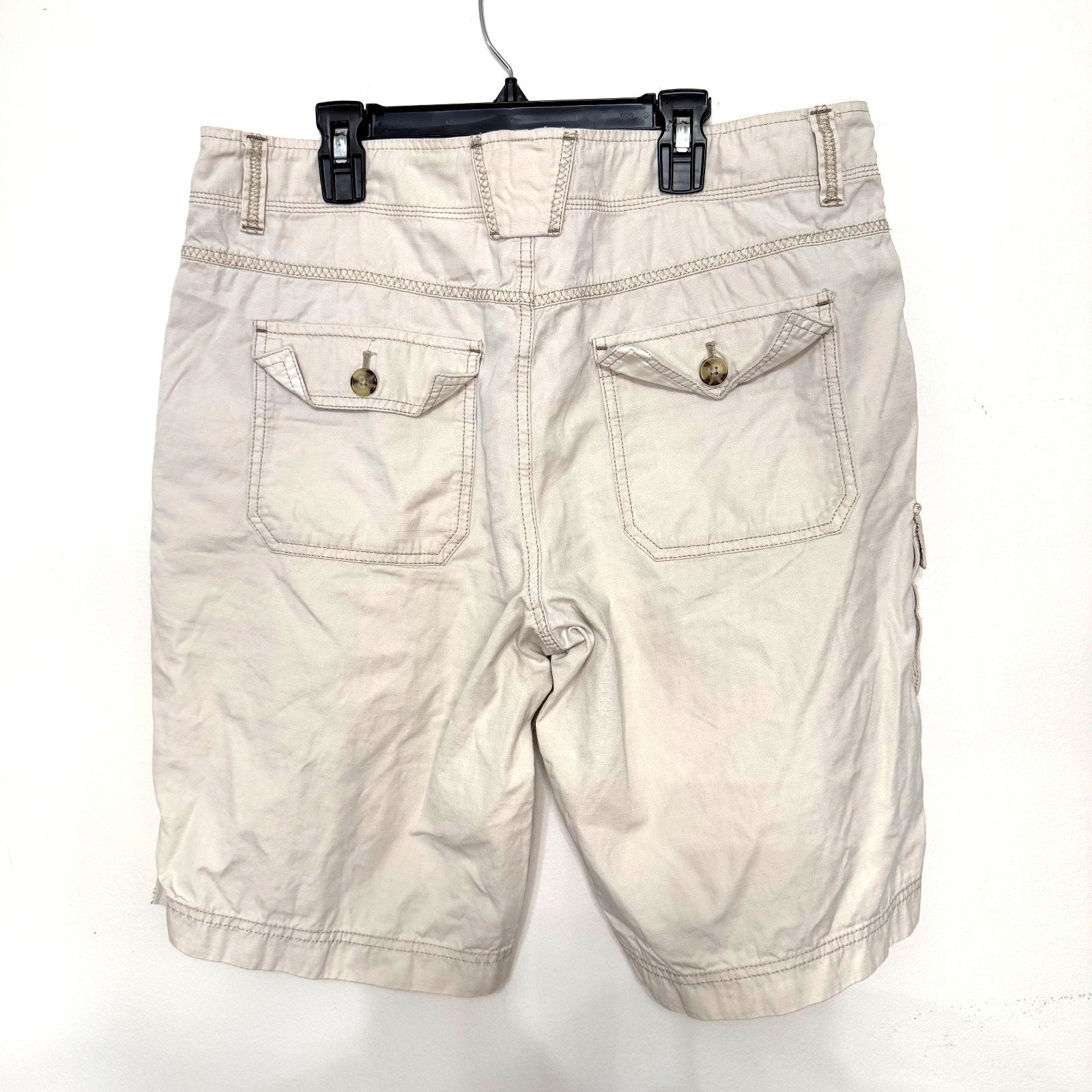 Eddie Bauer utility cargo shorts, women’s size 12, in classic tan lightweight cotton blend