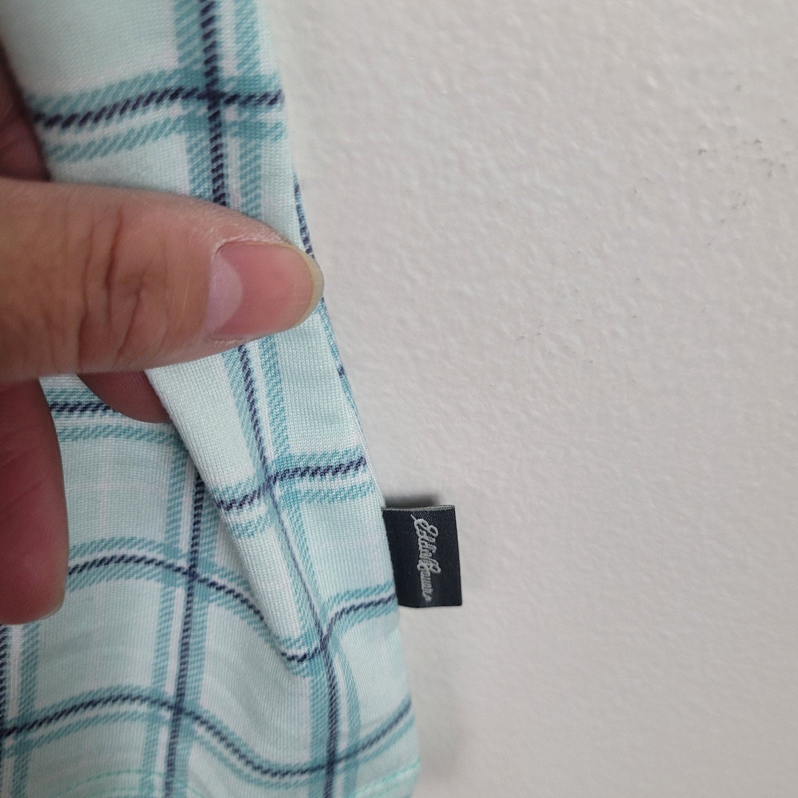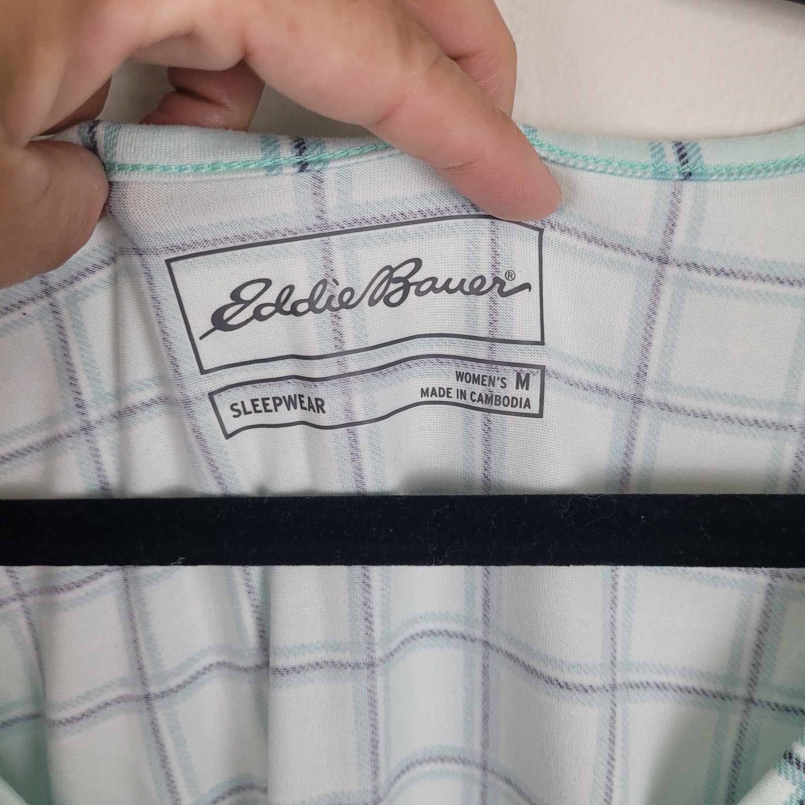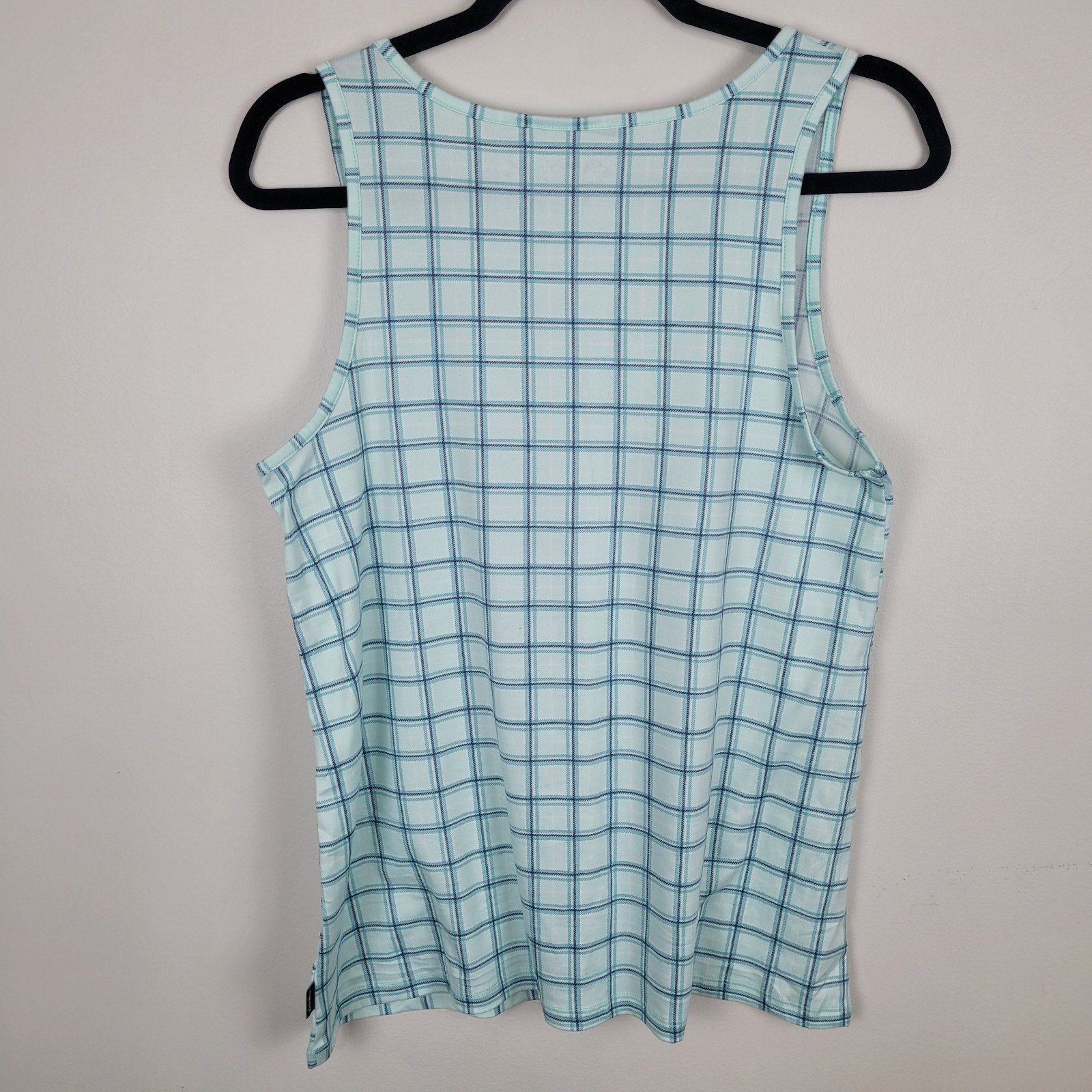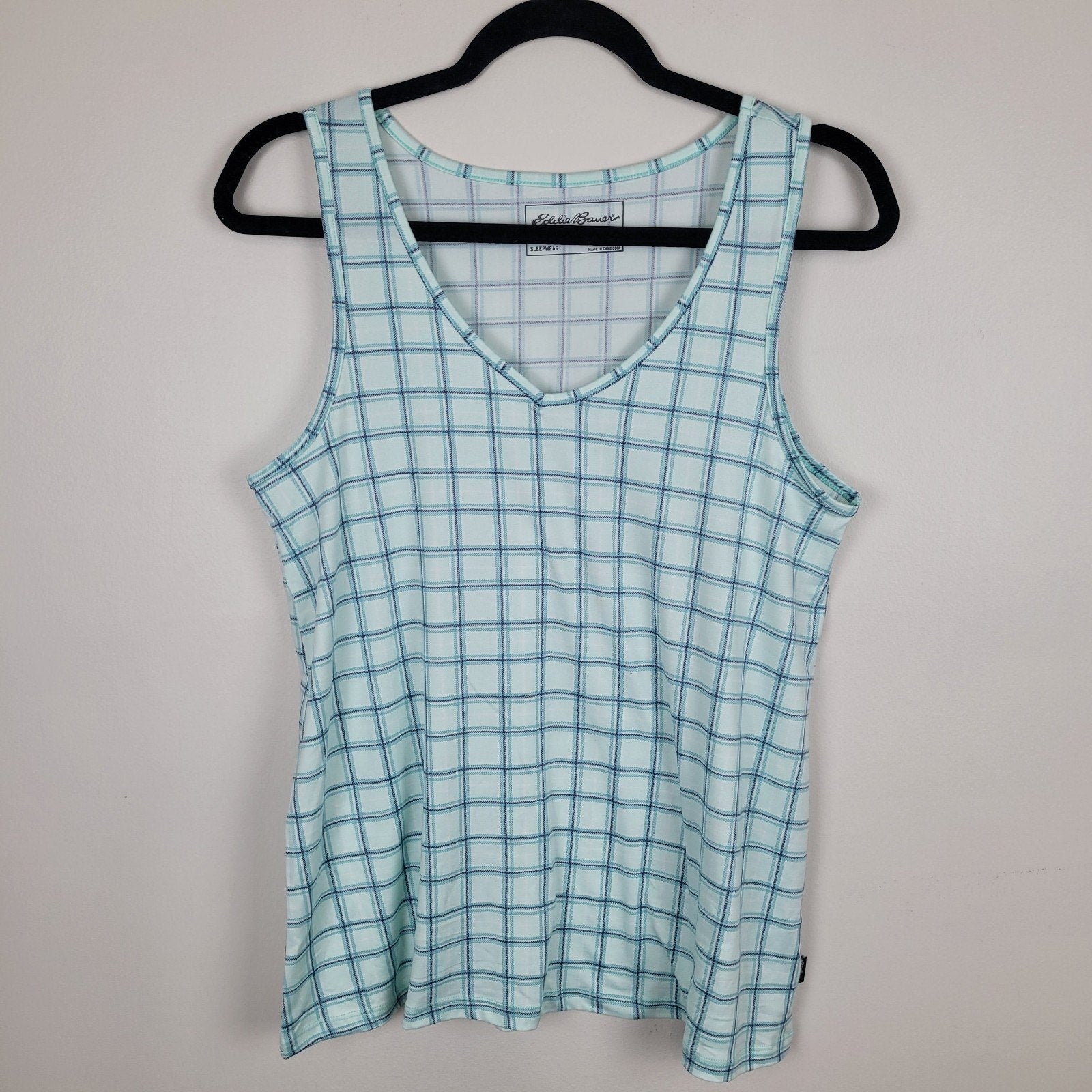 Eddie Bauer Womens Medium Pajama Tank Top Green Gray Plaid Soft Sleepwear Lounge