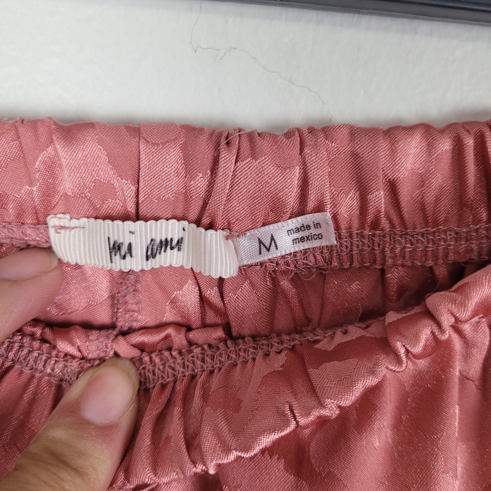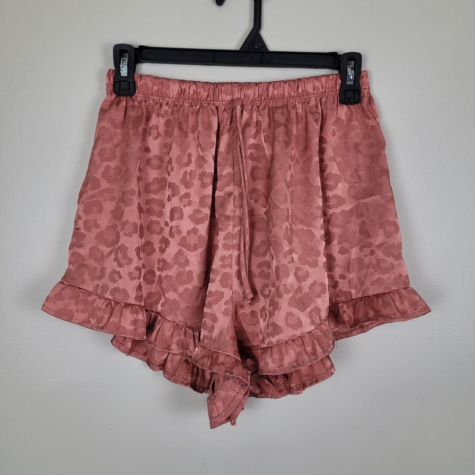 Francesca’s Womens M Leopard Print Satin Sleep Set Pink Ruffle Shorts Cami Sexy