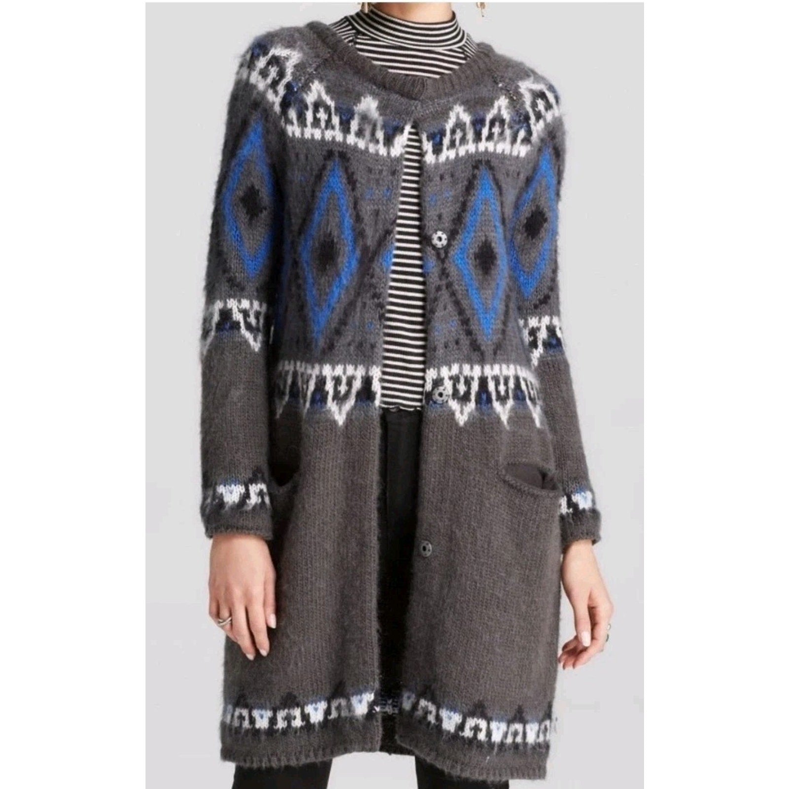 Free People F609X618 Frosted Fair Isle Cardigan Grey Combo SZ Medium