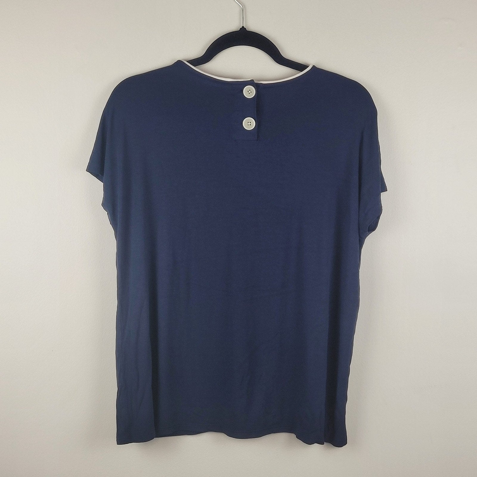 J Jill Wearever Collection Womens Medium Navy Blue Blouse Short Sleeve VGUC