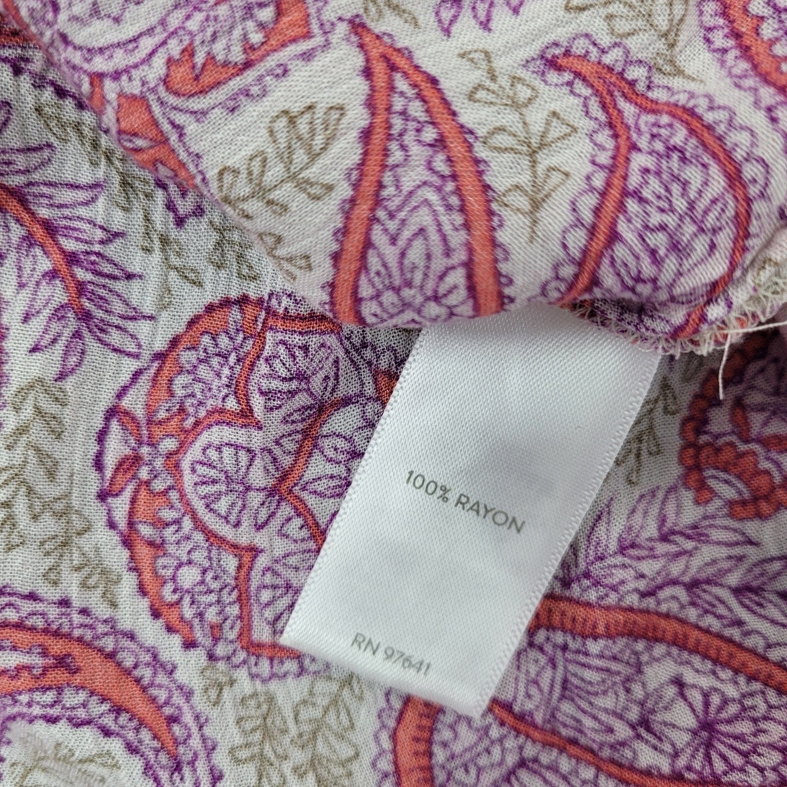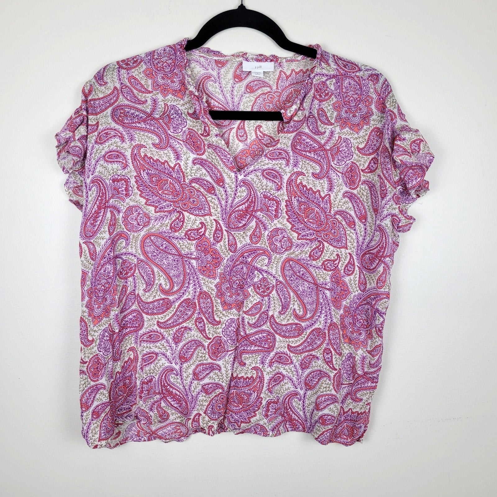 J.Jill Womens S Petite Blouse Pink Paisley Ruffle Short Sleeve Top