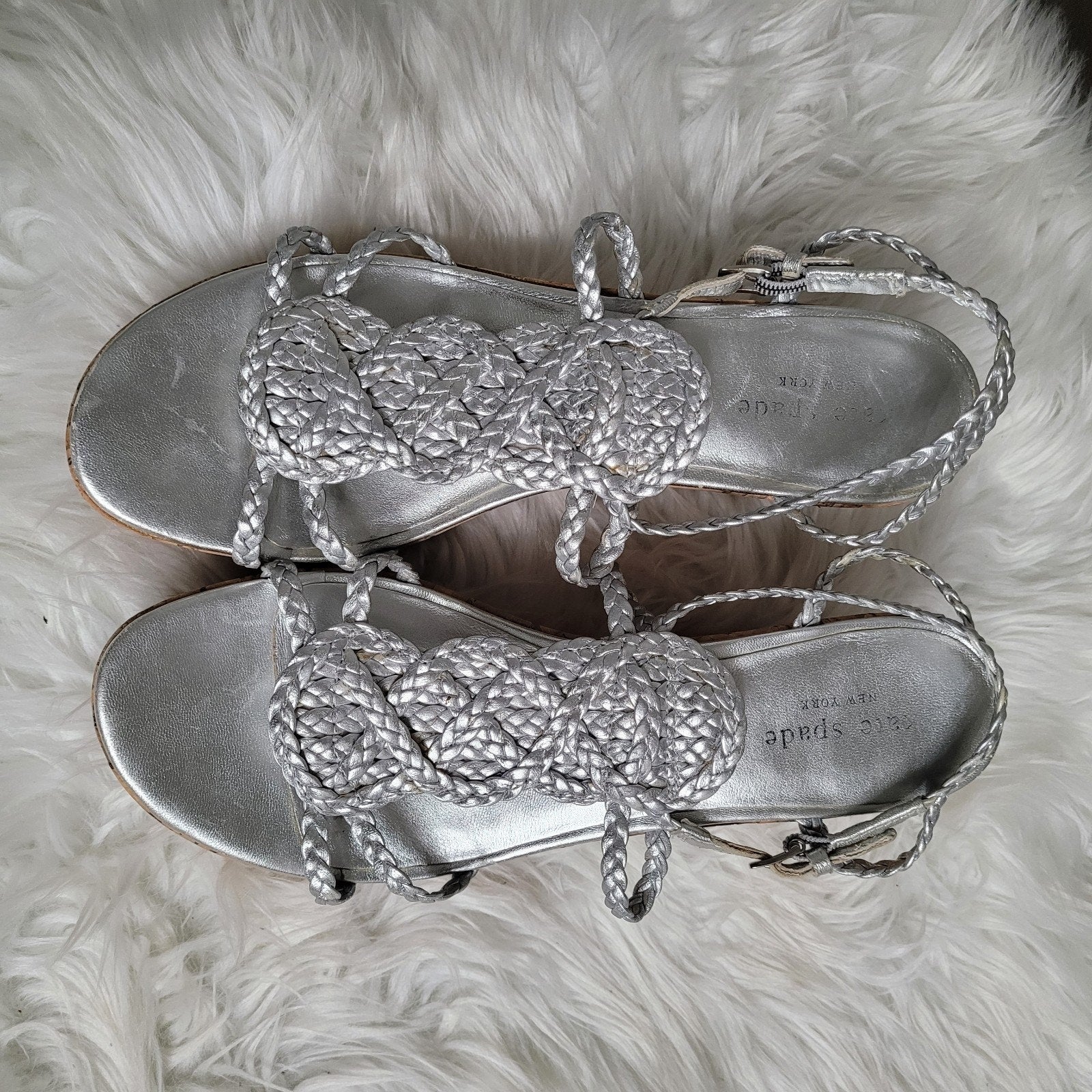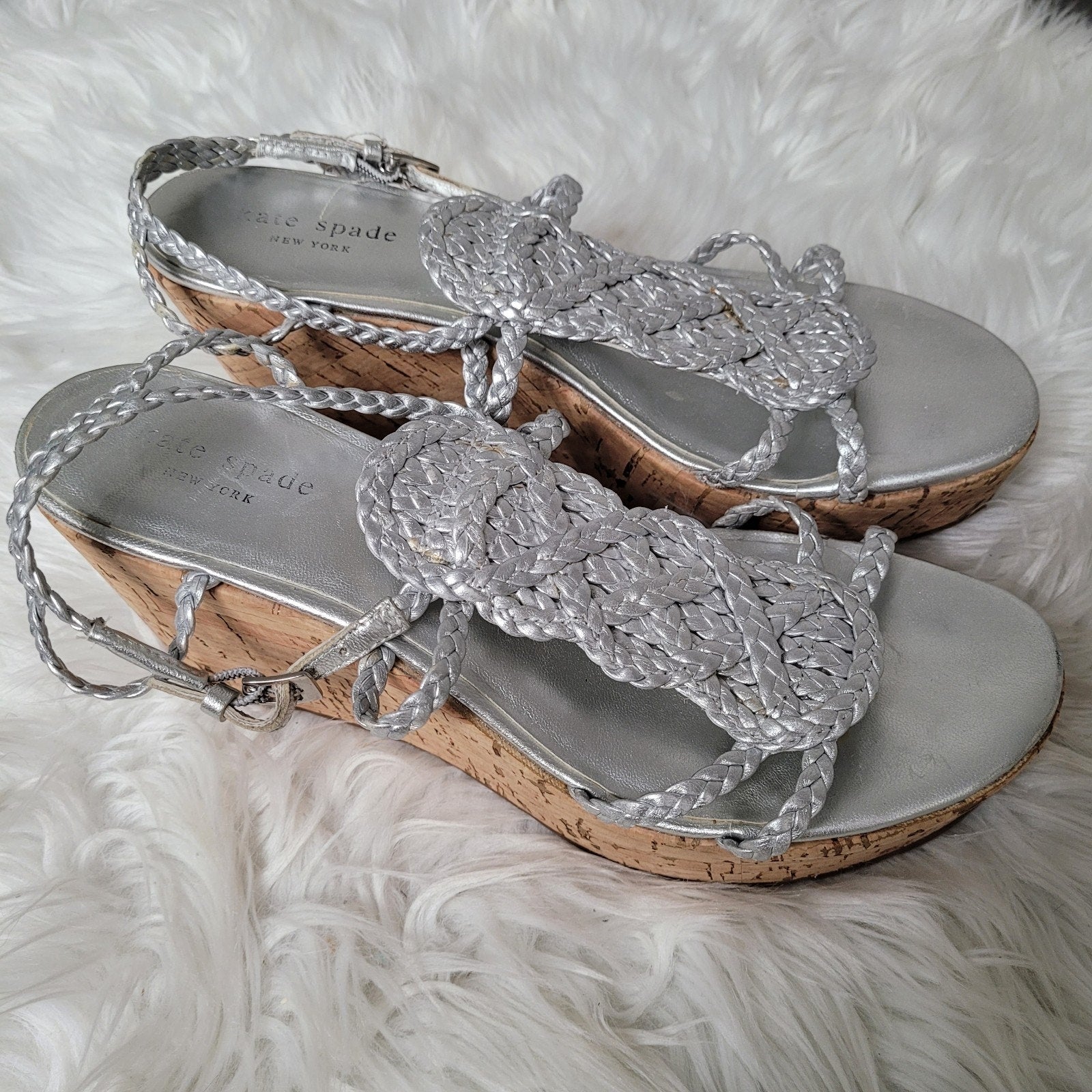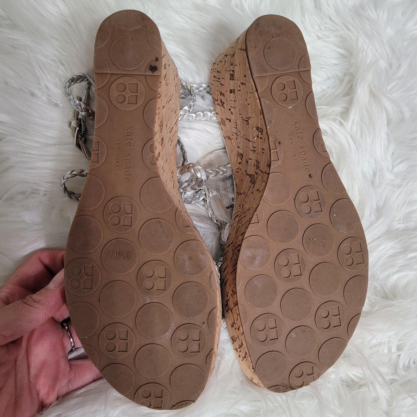 Kate Spade New York Women’s 8.5 Wedge Sandals Silver Braided Cork Heel