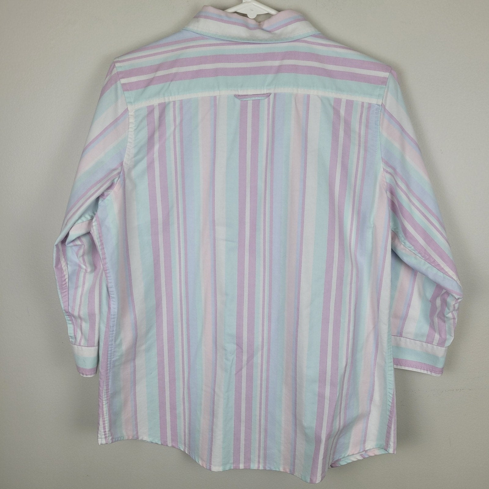 L.L. Bean Womens Medium Cotton Button Up Shirt Pastel Stripe 3/4 Sleeve Preppy