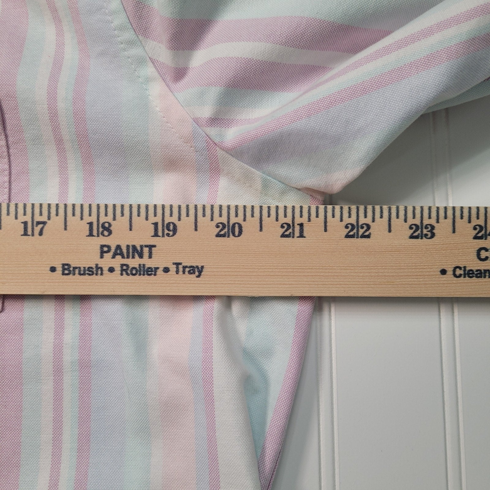L.L. Bean striped cotton button-up shirt, women’s size medium, pastel pink, mint, and lavender