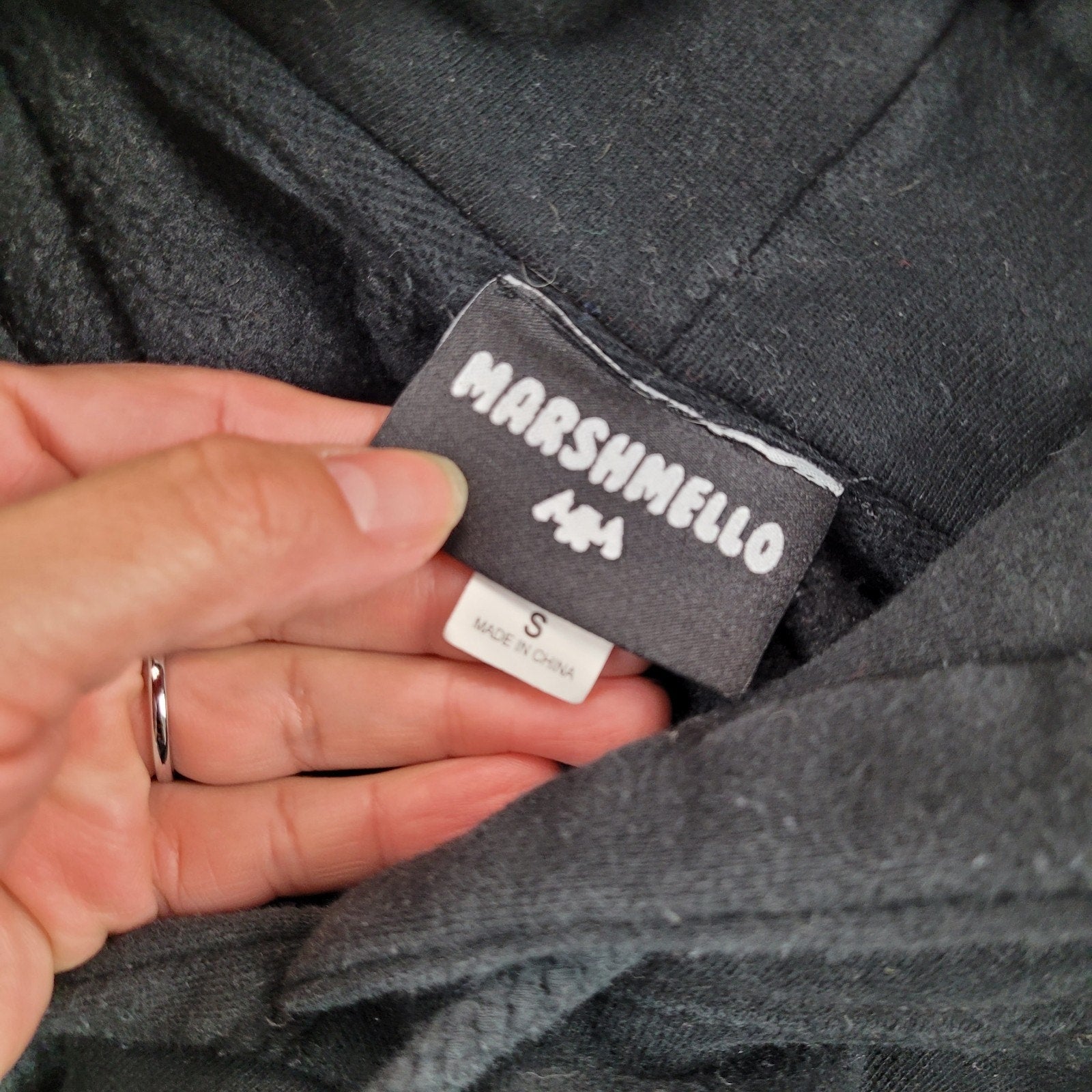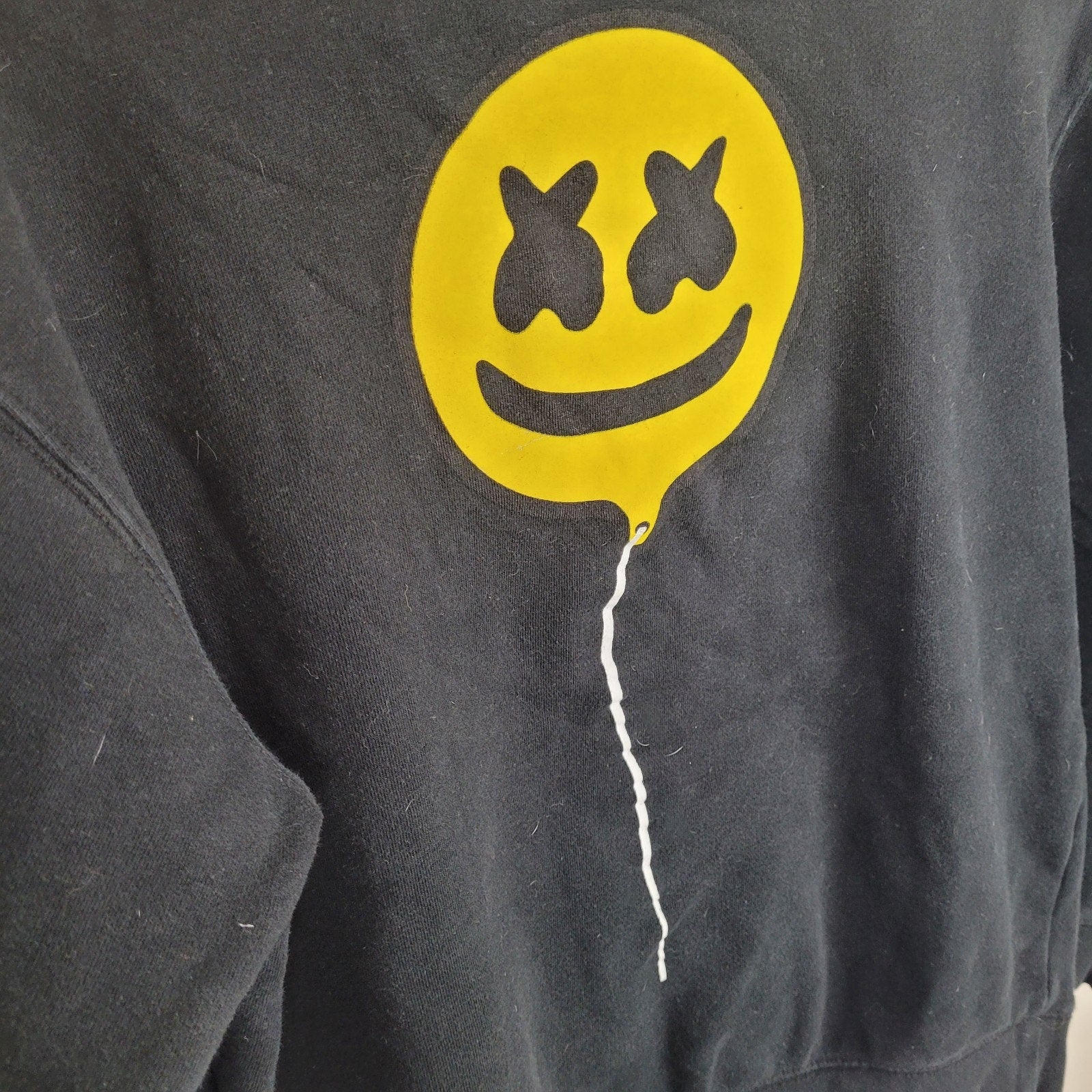 Official Mellogang Marshmello unisex hoodie in black with yellow smiley face graphic, size Medium. GUC – normal wear, plenty of life left.