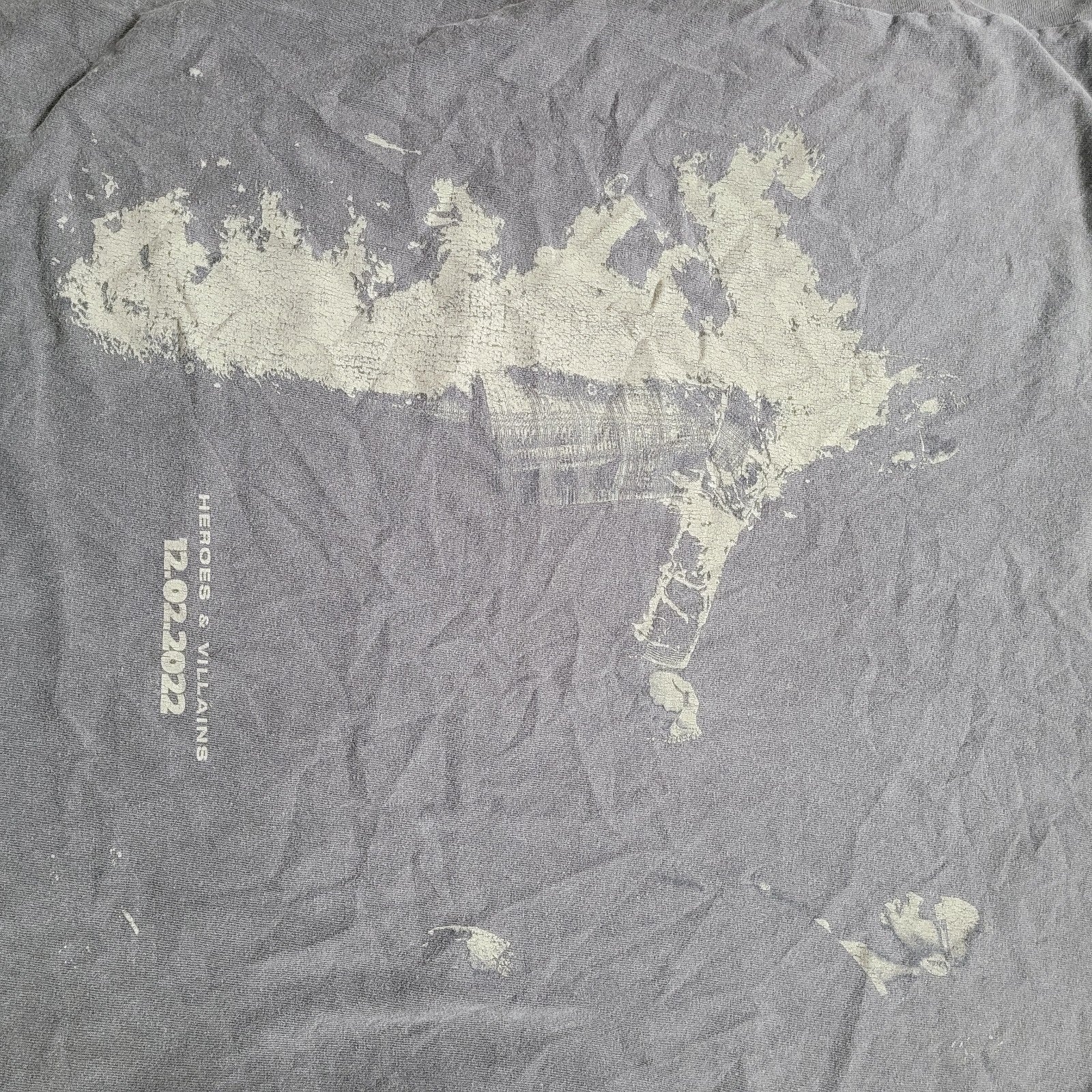Metro Boomin 2022 Heroes & Villains Tour T-shirt, men’s size Medium, in faded gray with graphic front print.