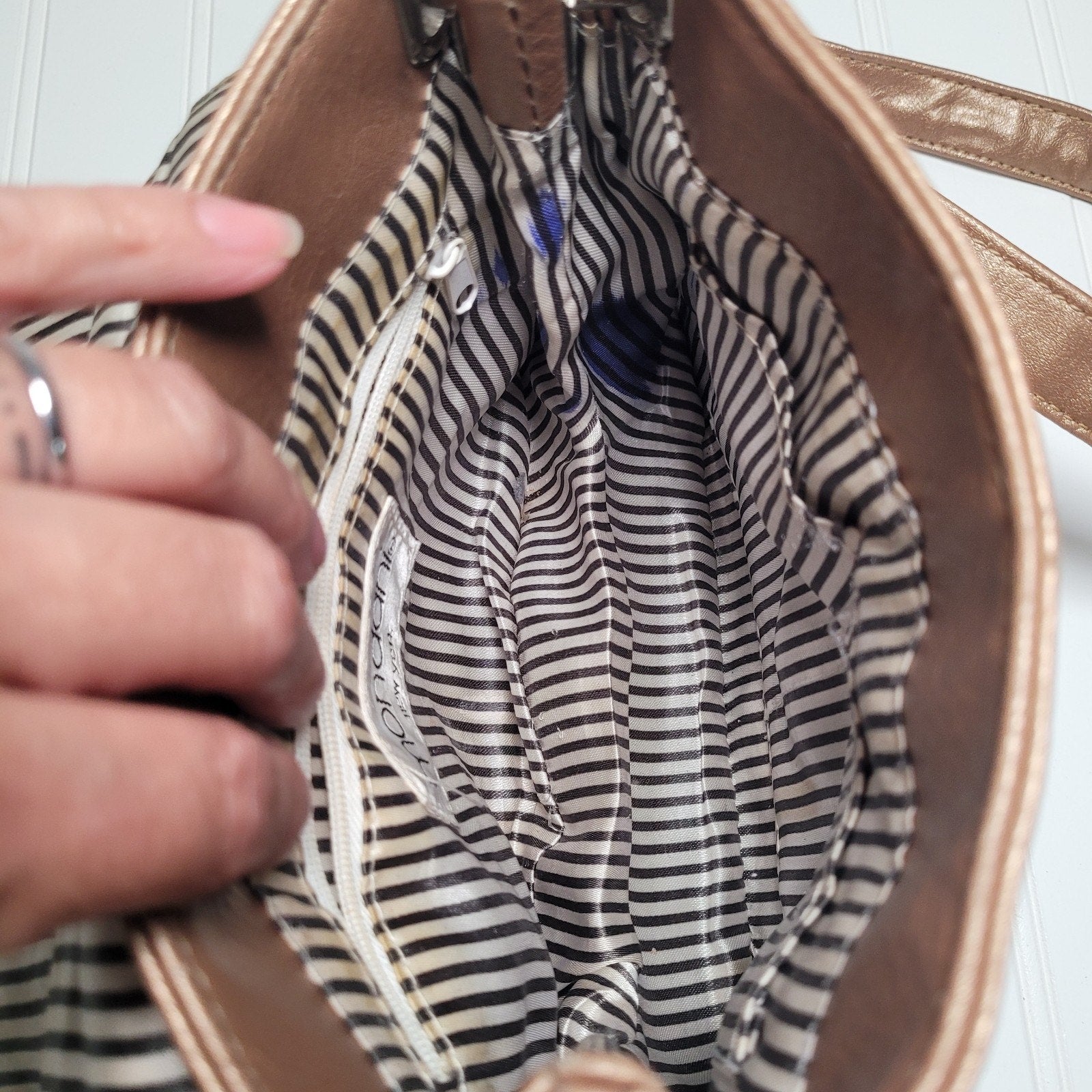 Mondani NY Tan Faux Leather Crossbody Bag Y2K Buckle Studded Western Boho