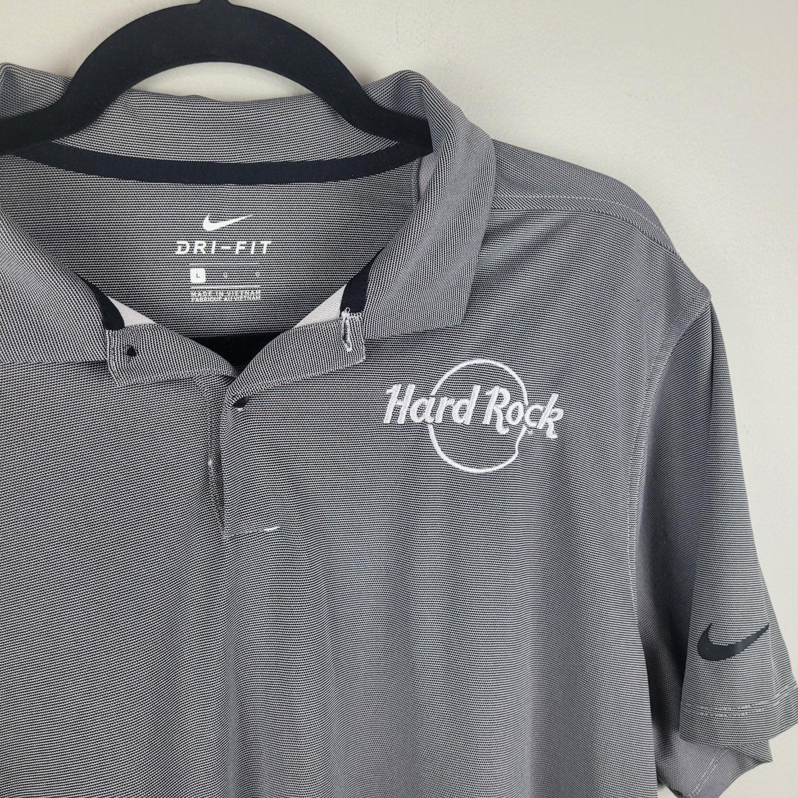 Nike Dri-Fit men’s polo shirt, size Large, in gray with Hard Rock Hotel embroidered logo.