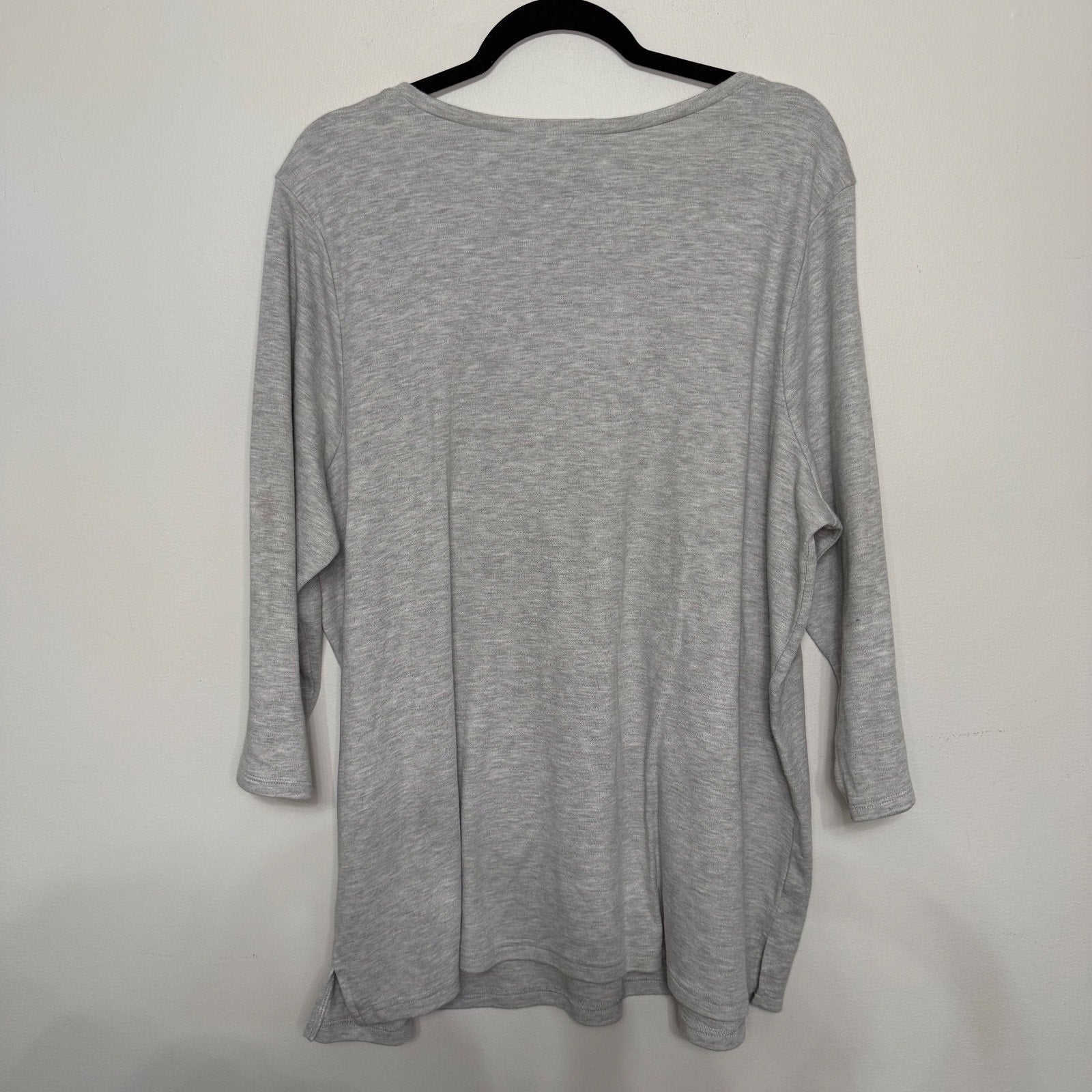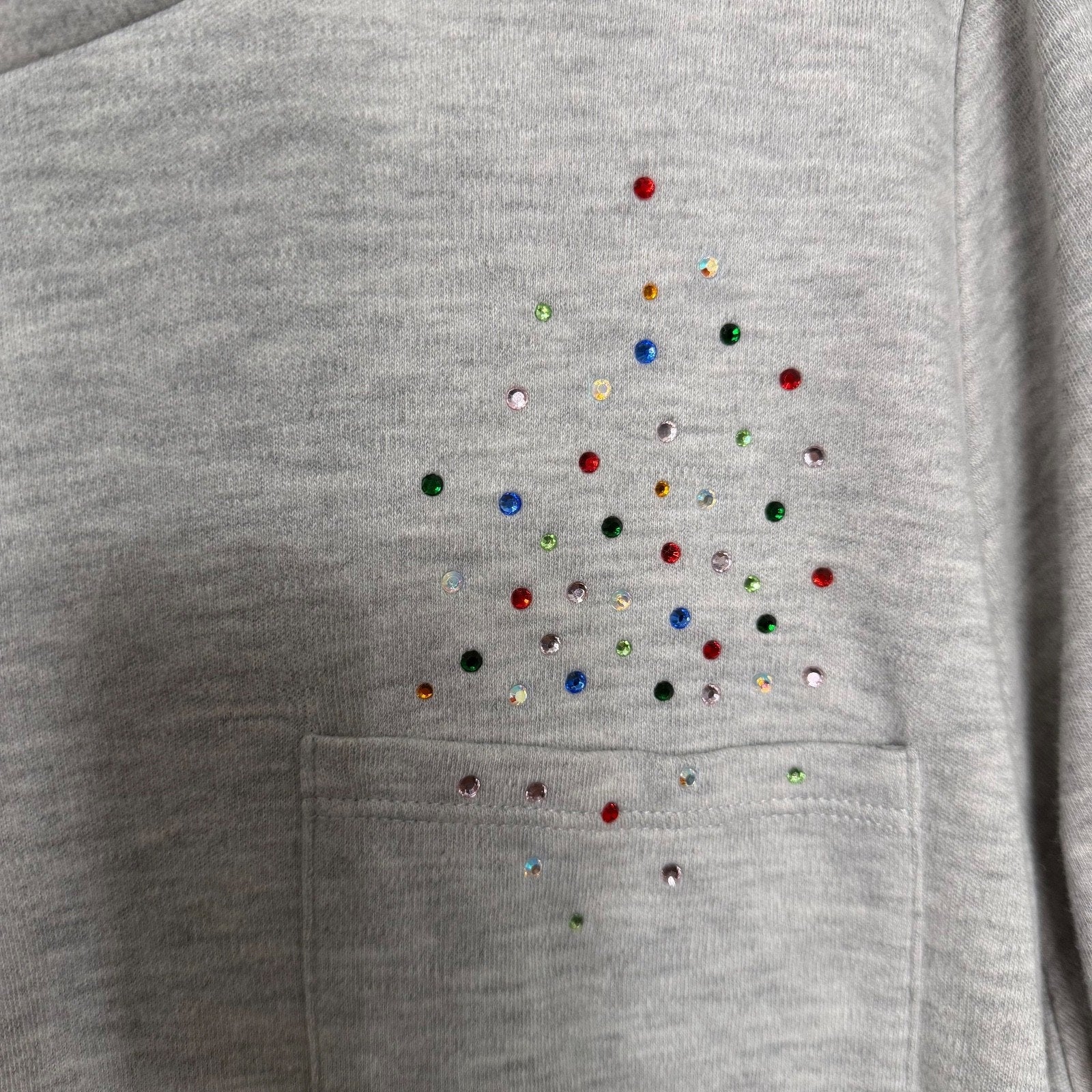 Quacker Factory “Wearable Art” shirt, women’s 2X, soft heather gray with colorful rhinestone embellishments on front pocket