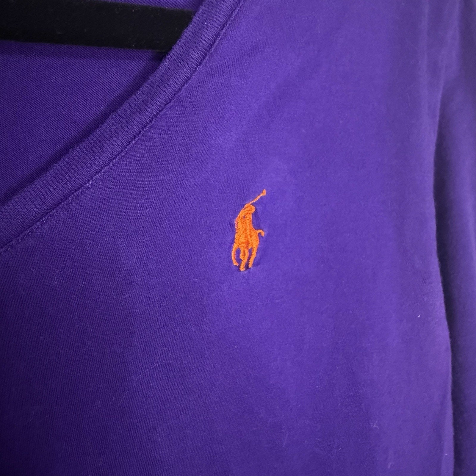Ralph Lauren Sport long-sleeve tee in rich purple with iconic orange pony logo, women’s size Medium... a timeless preppy essential.