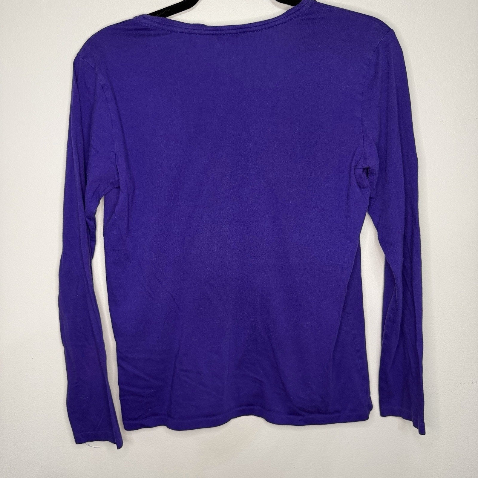 Ralph Lauren Sport Womens Medium Purple Long Sleeve V-Neck Tee Preppy Classic Layering Top