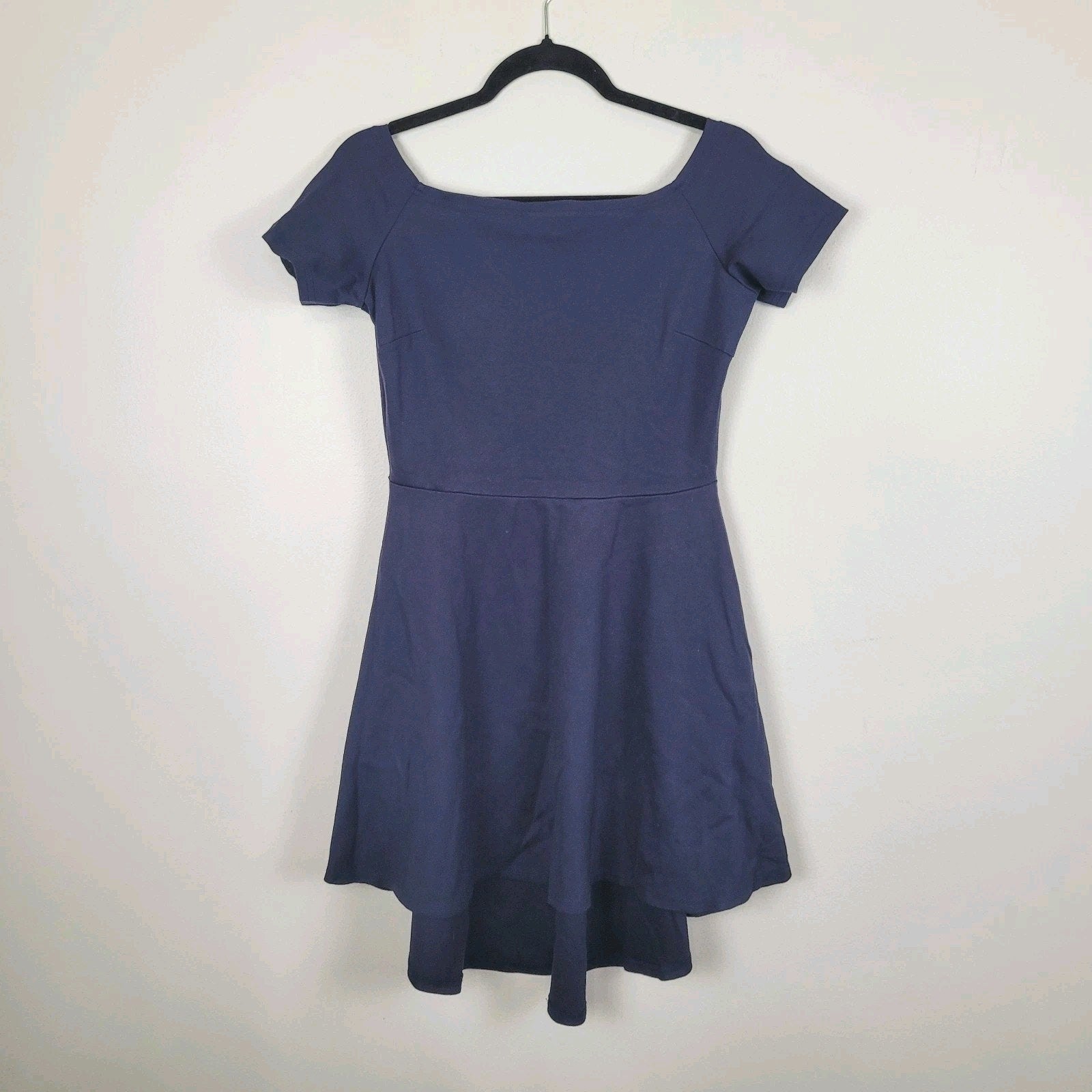 Sarin Mathews Junior's L Navy Off Shoulder Hi Low Dress Short Sleeve Homecoming