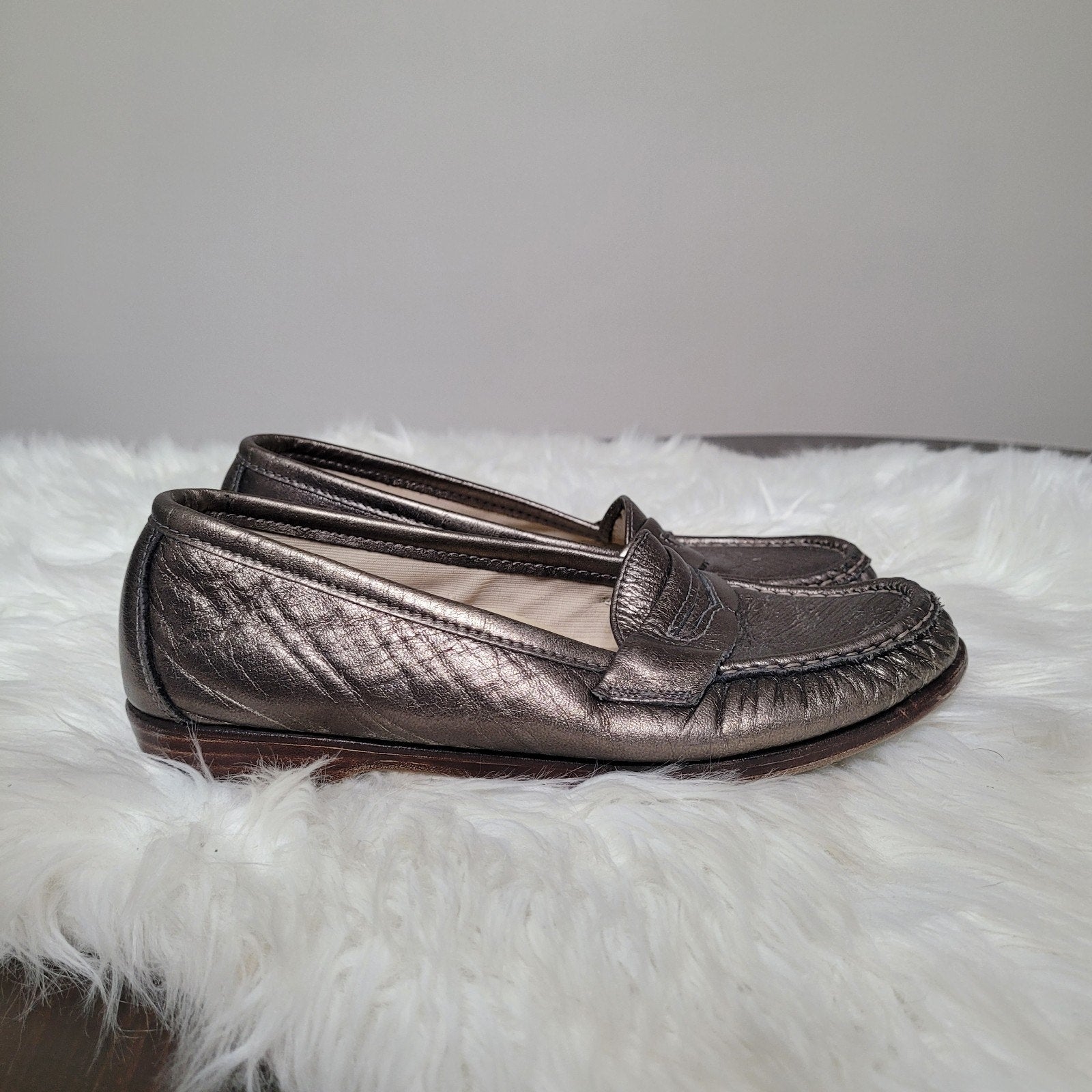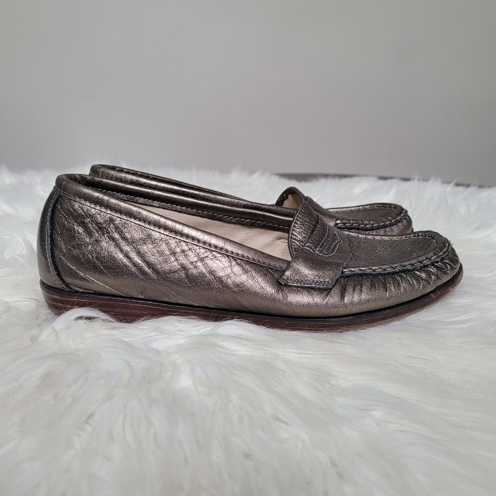 SAS Women’s Size 6 Wink Slip On Penny Loafer Pewter Leather Moccasin Shoes