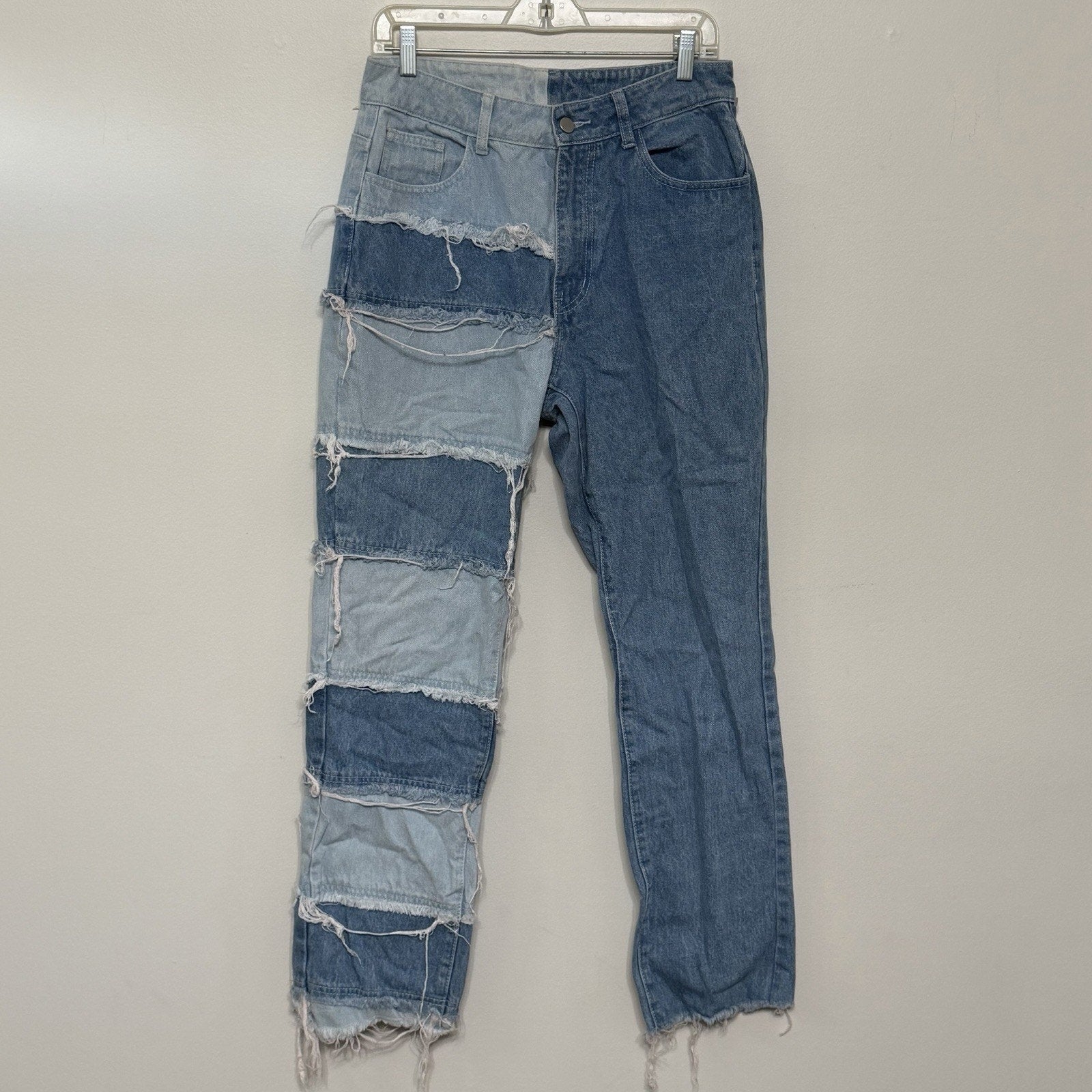 SHEIN Y2K Casual Washed Wide-Leg Baggy Jeans Patchwork Frayed Sz 10