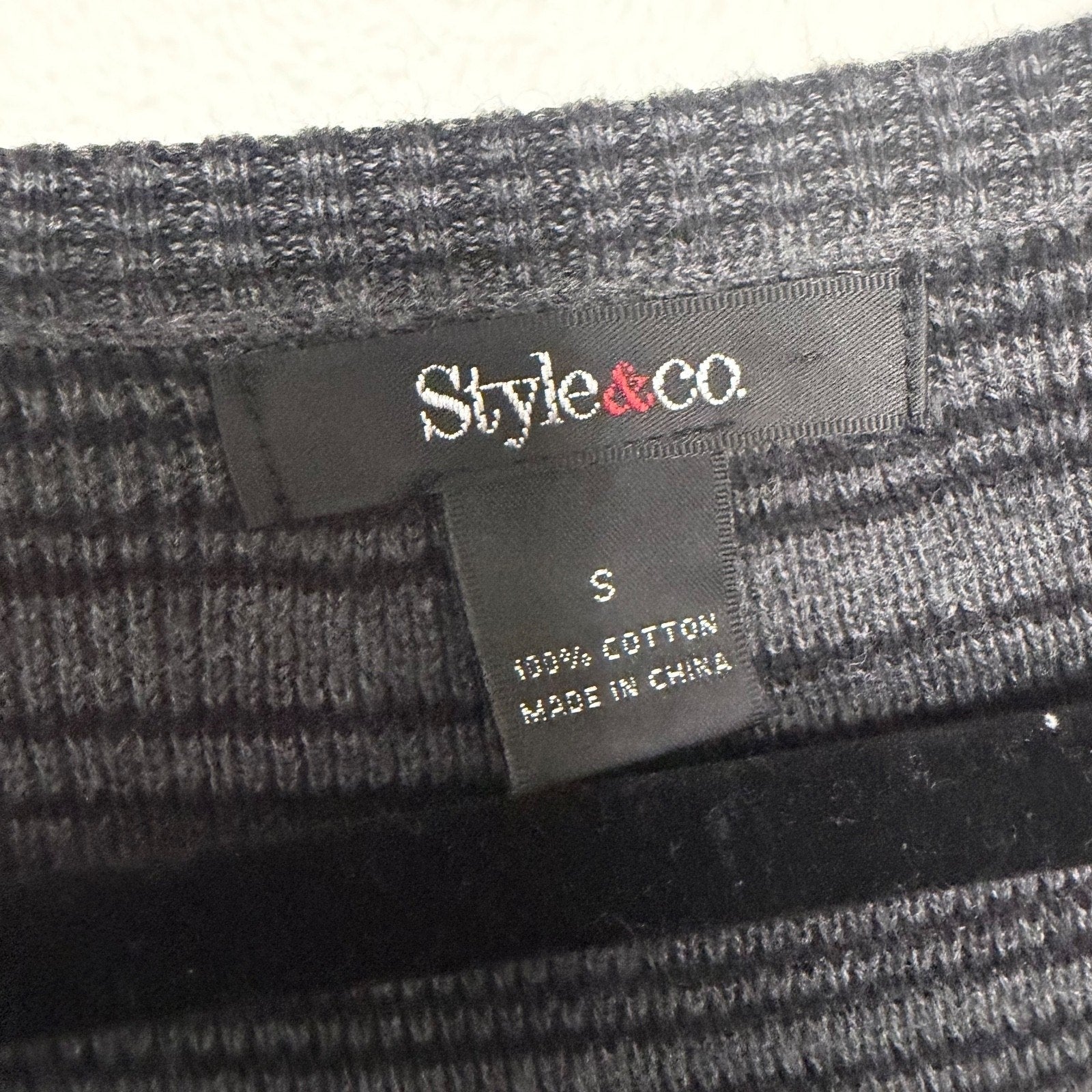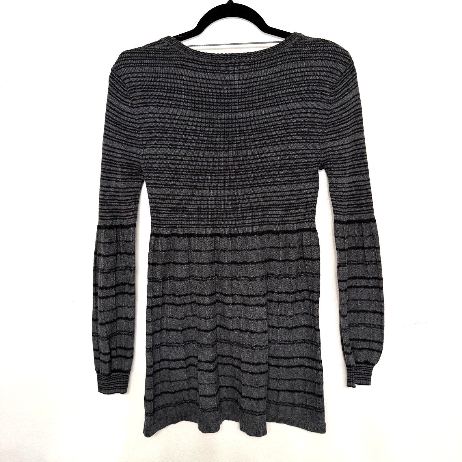 Style & Co striped knit sweater dress, women’s size small, in black and gray horizontal stripe pattern