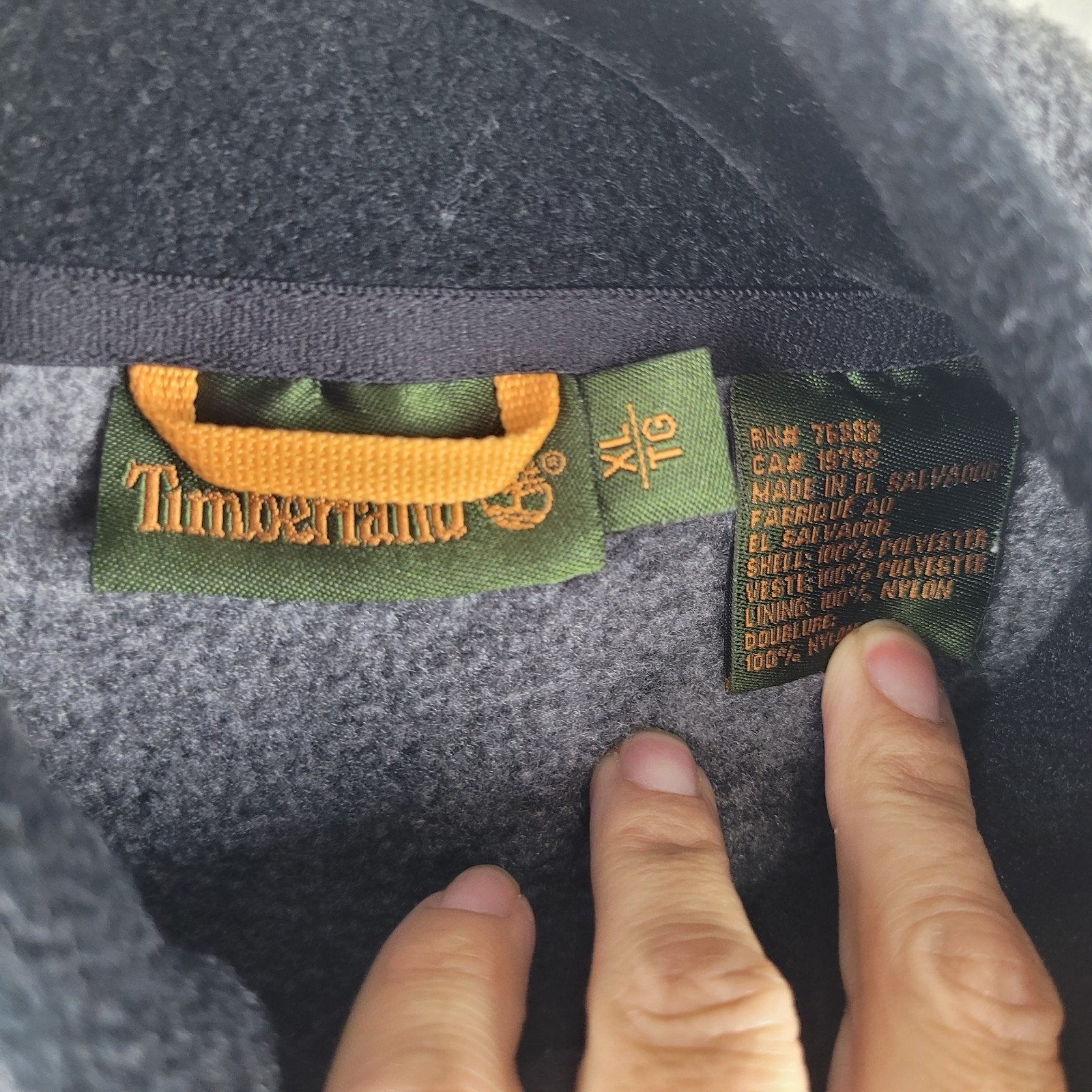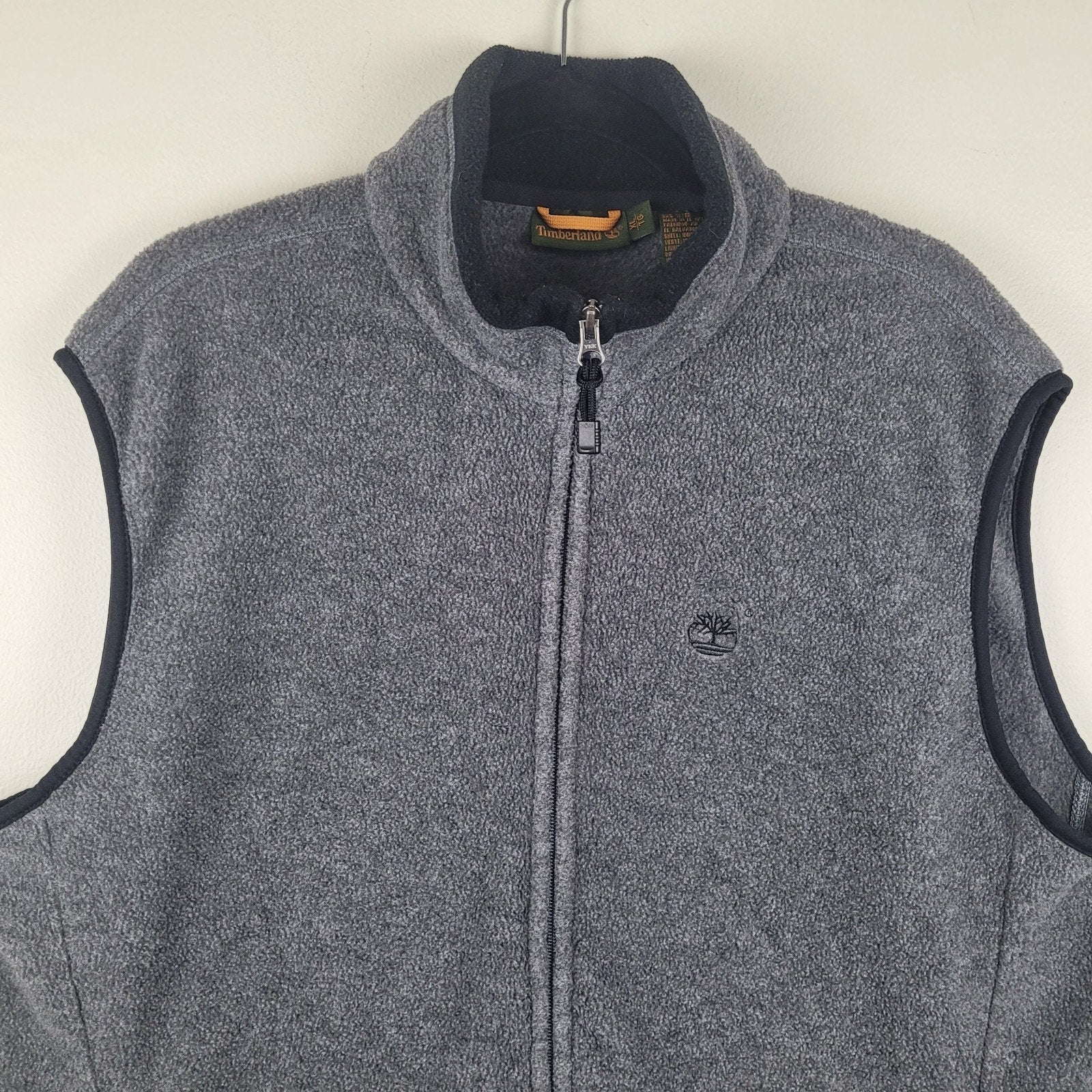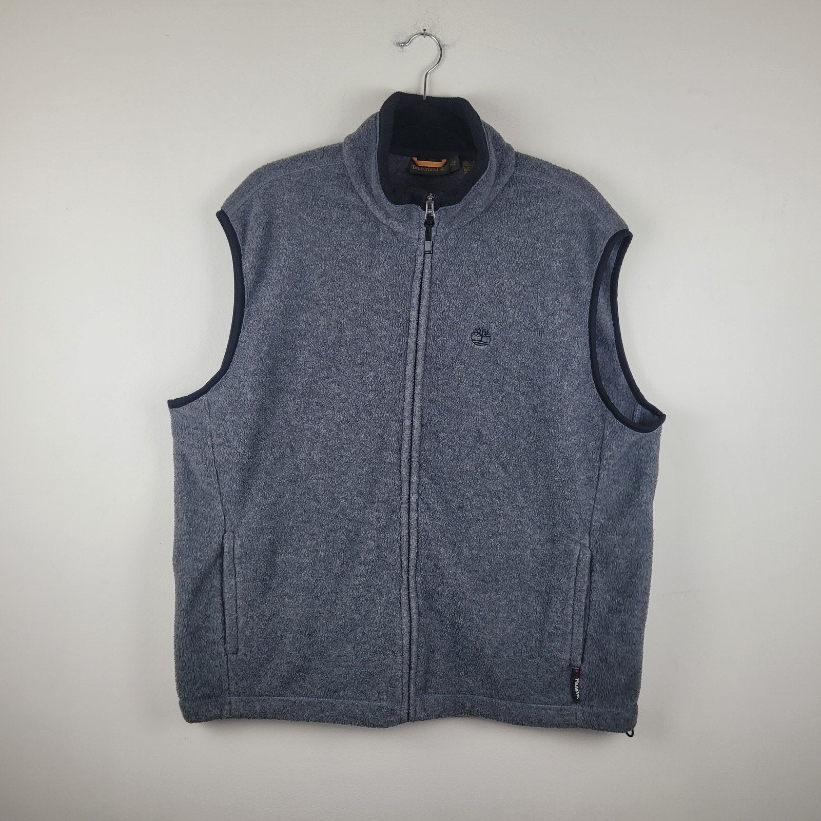 Timberland men’s full zip vest, size XL, in gray Polartec fleece with pockets.