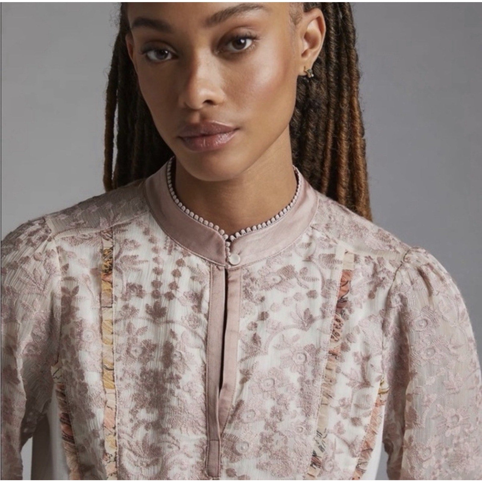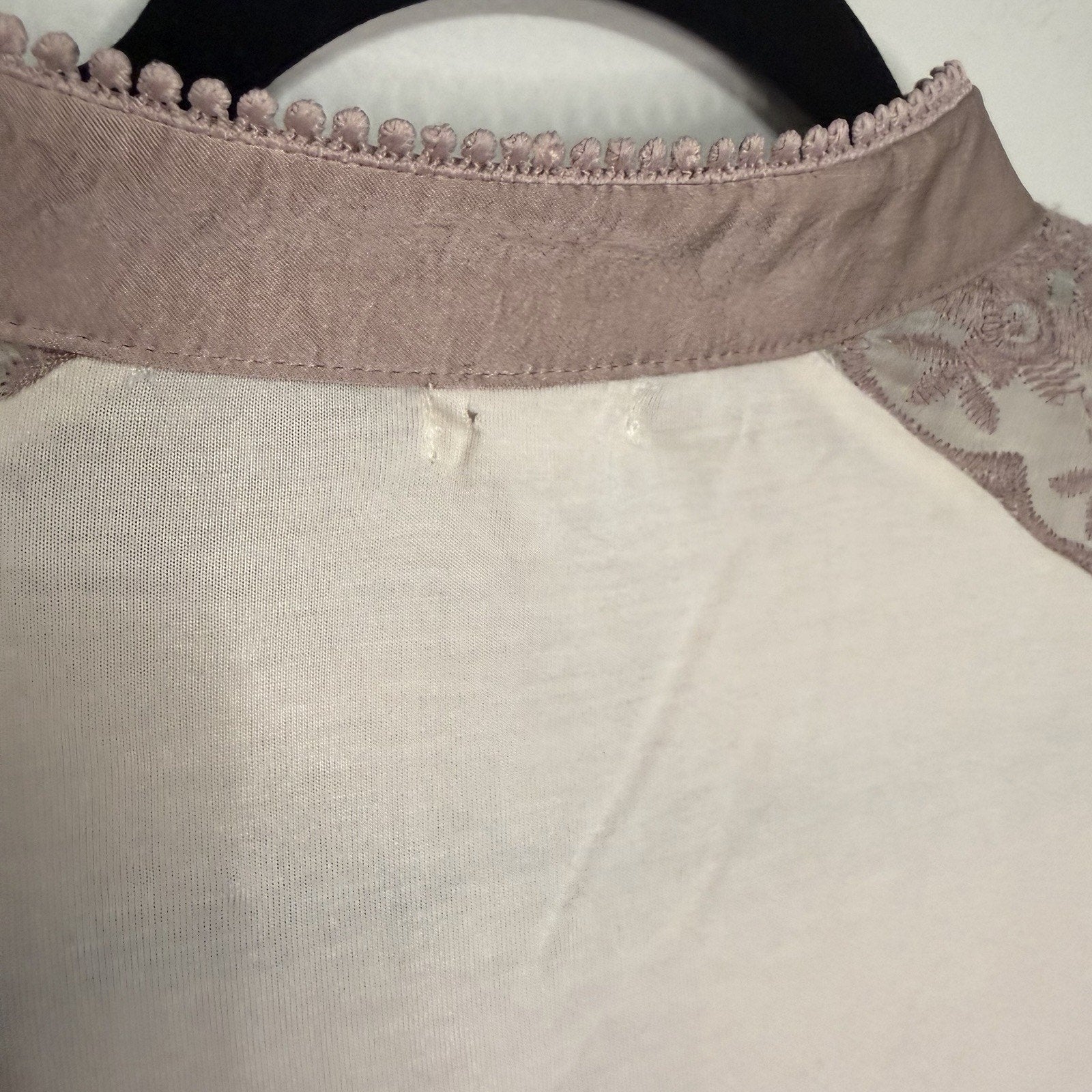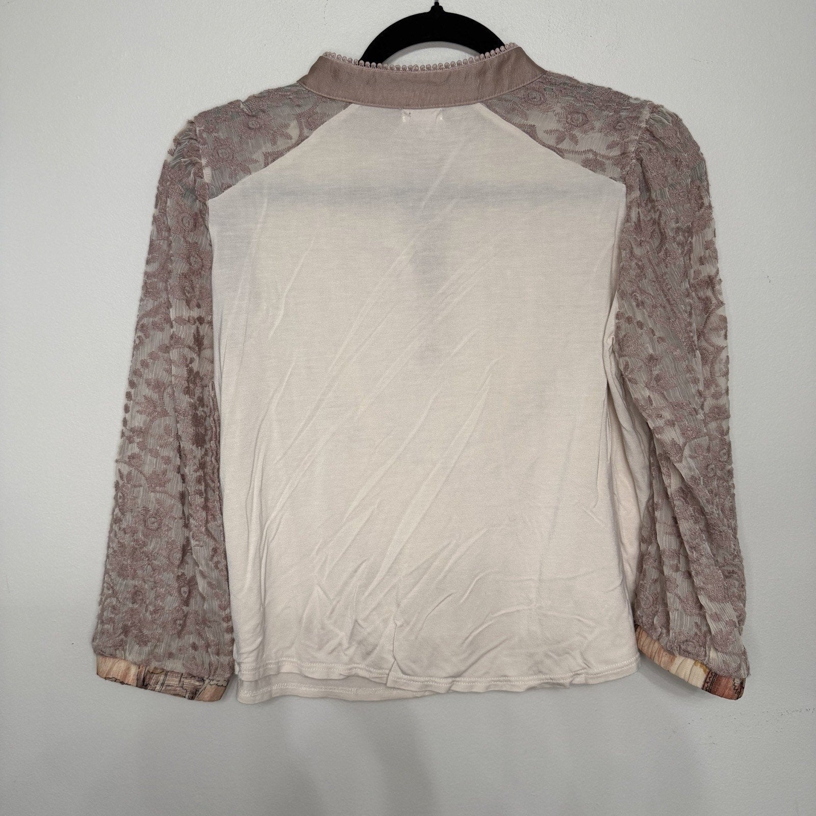 Tiny by Anthropologie Cream & Pink High Neck Lace Front Blouse Size Medium