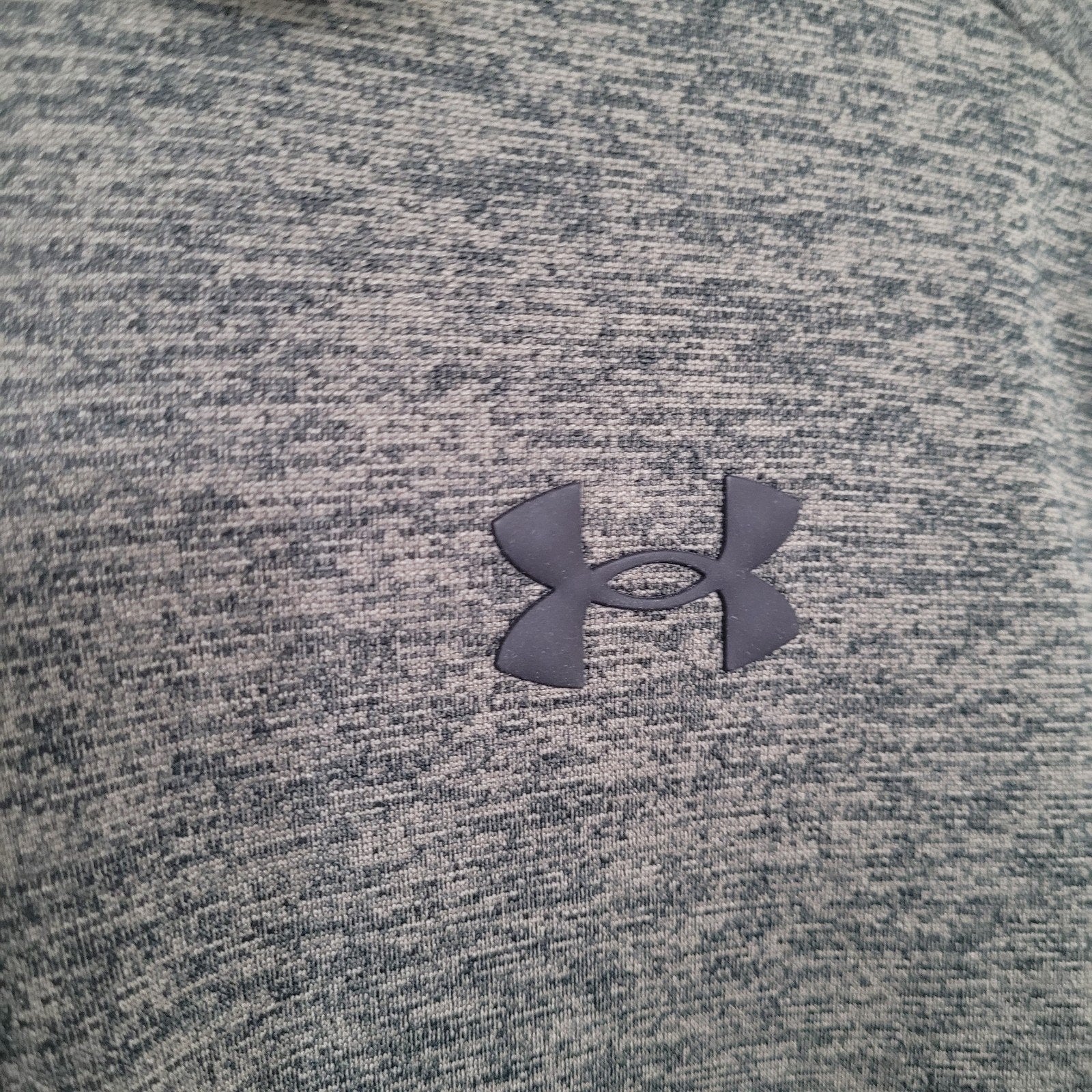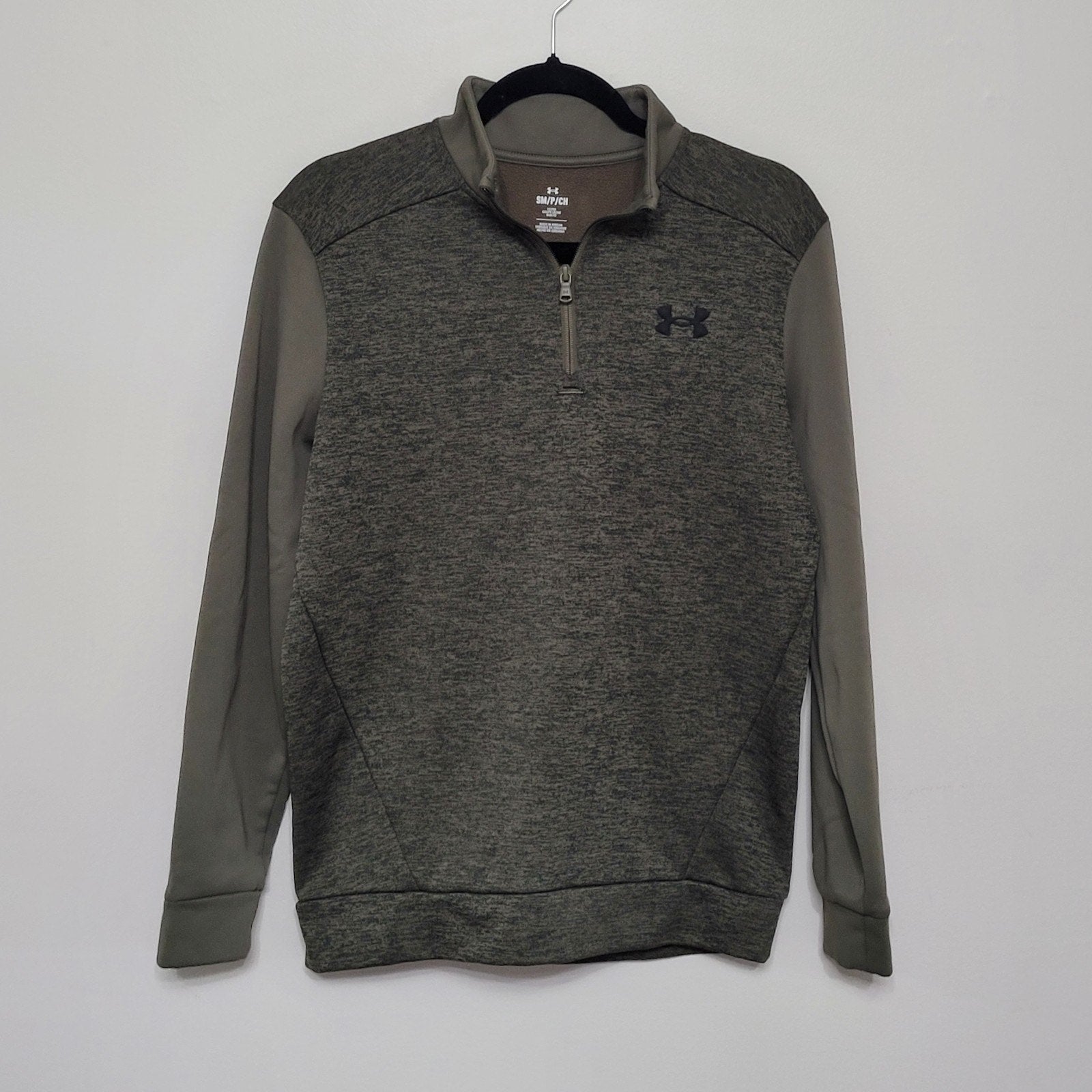 Under Armour men’s quarter zip pullover, size Small, in gray with logo detail.