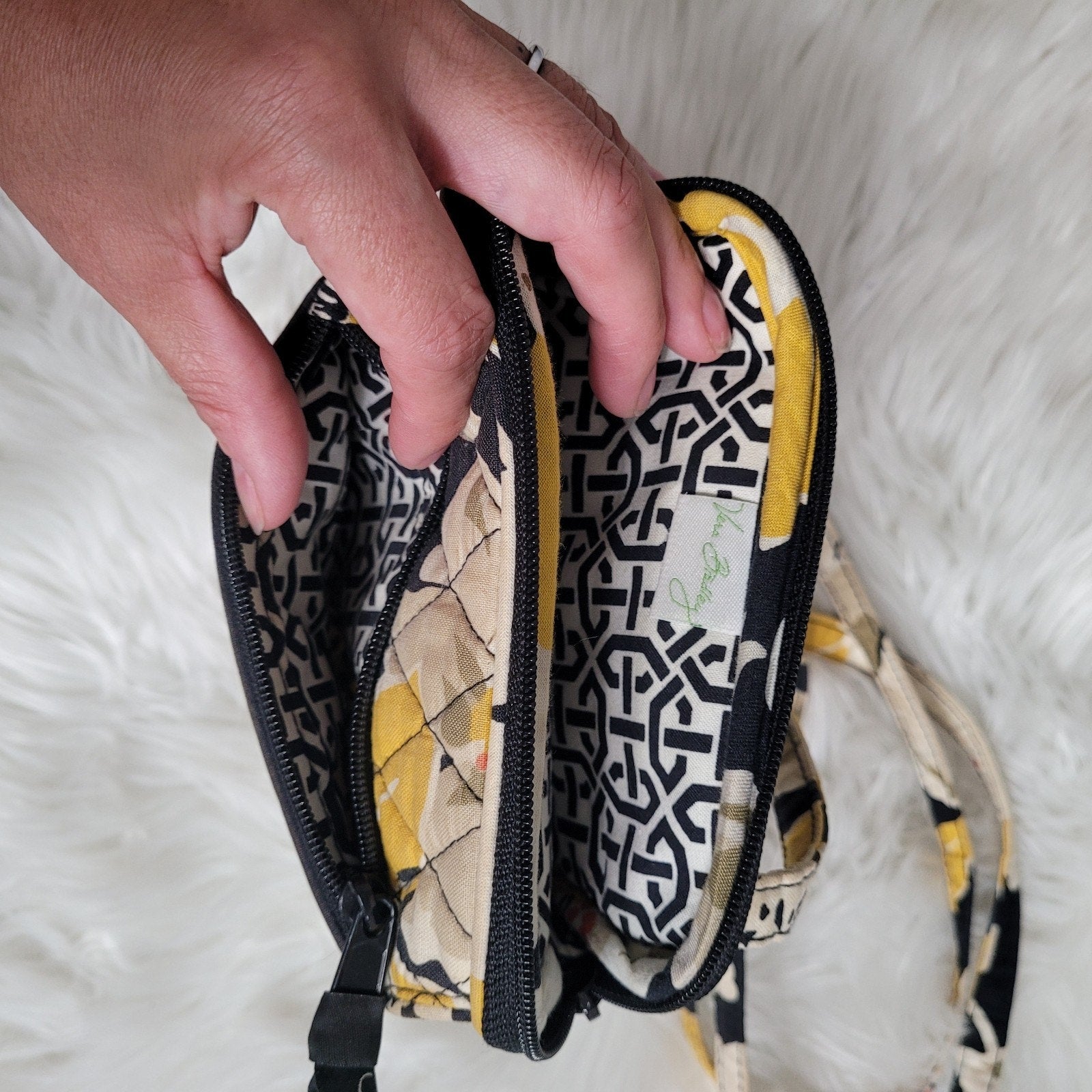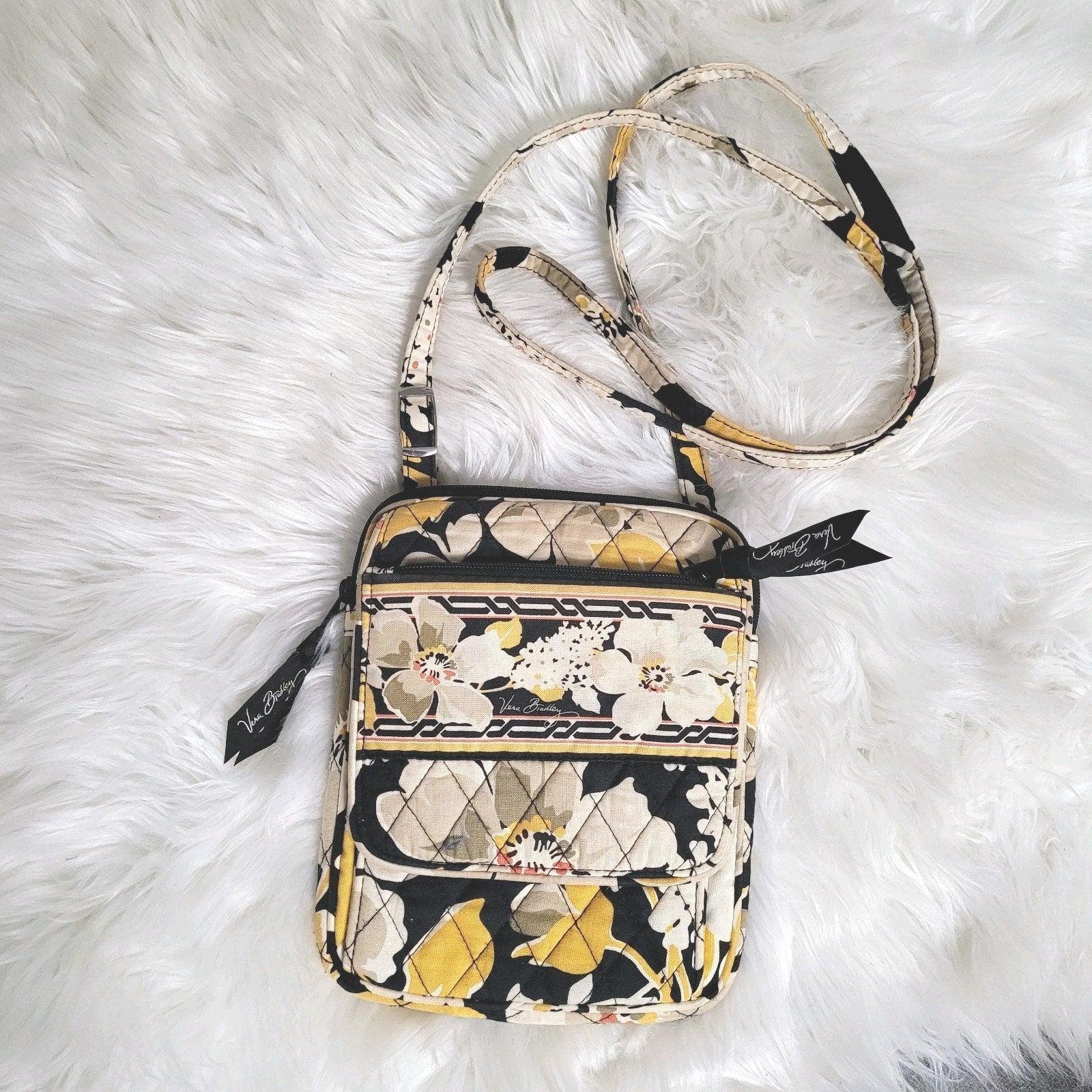 Vera Bradley Dogwood Crossbody Bag Yellow Black White Floral Hipster