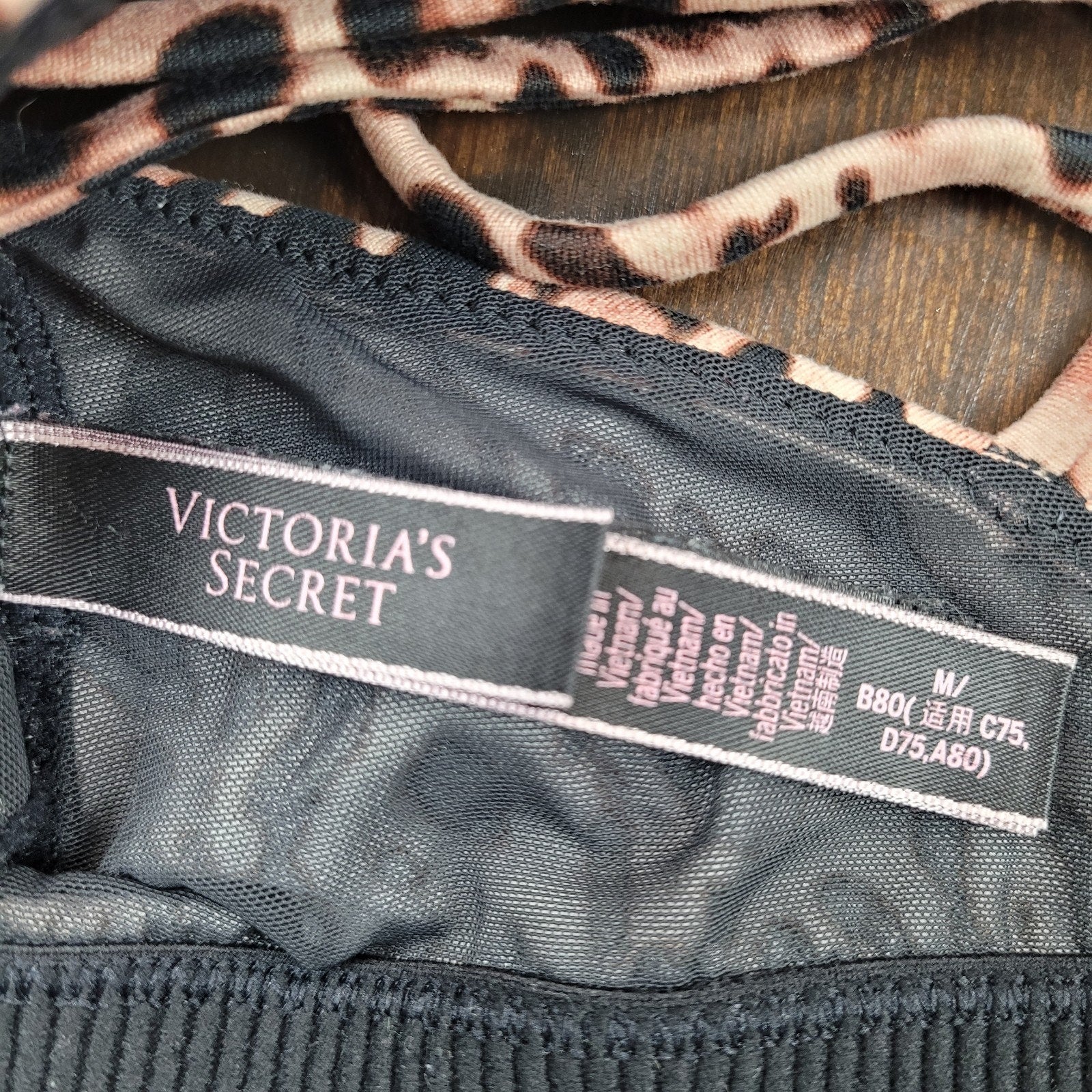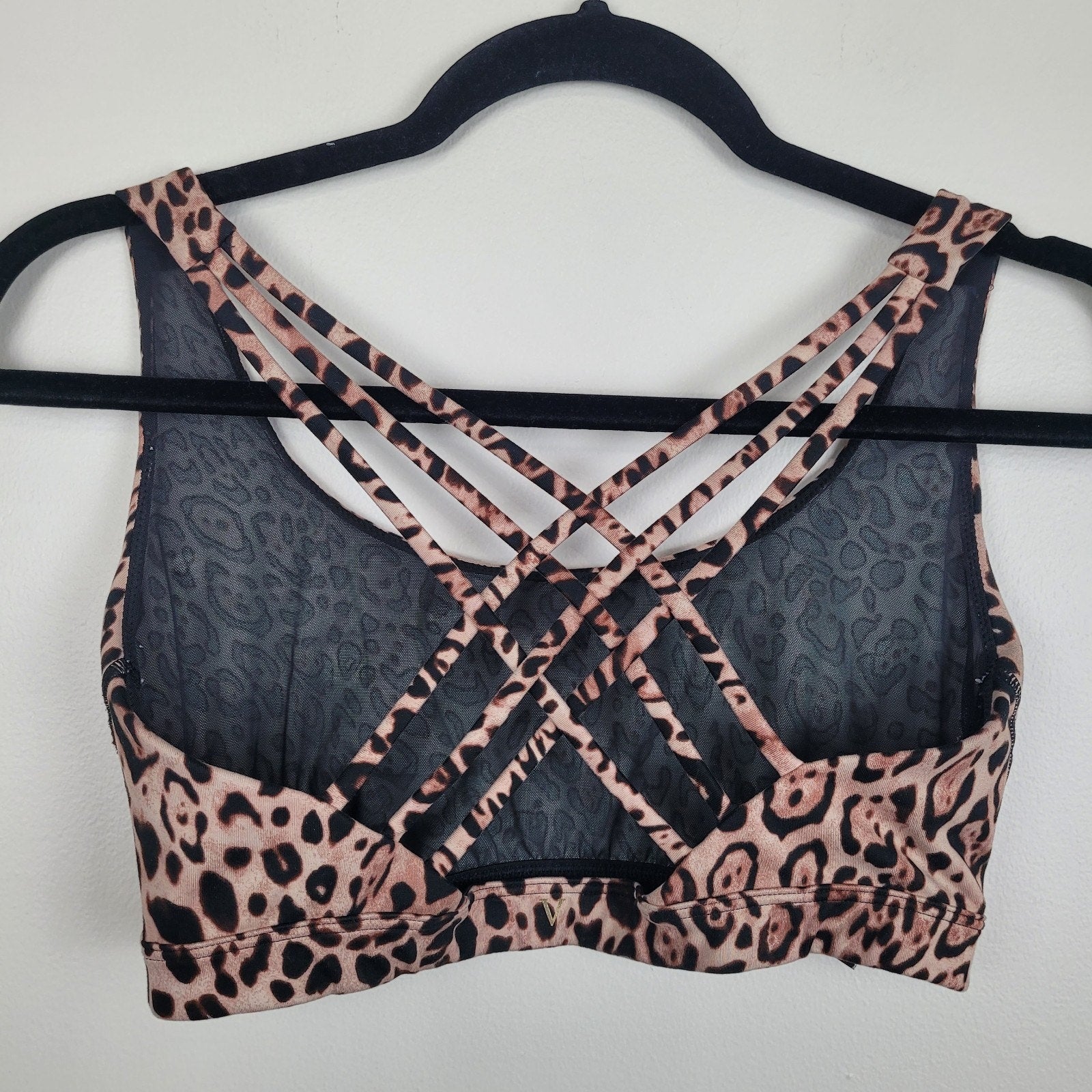 Victorias Secret Sport Womens Medium Sports Bra Leopard Print Strappy Back