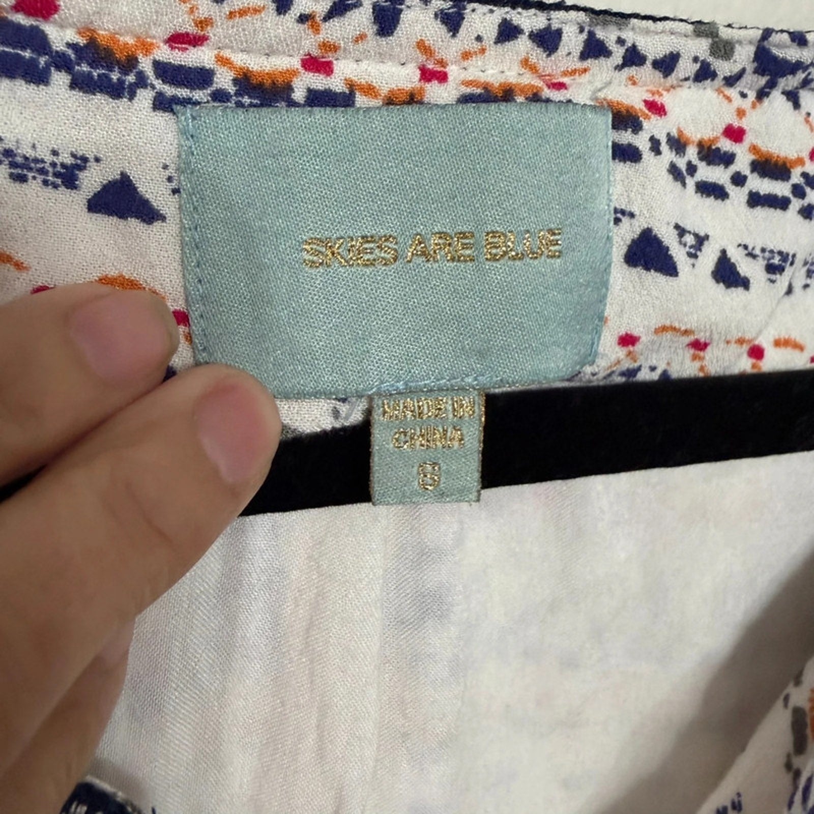White Geometric Skies Are Blue Size 6 Boho Tunic Dress
